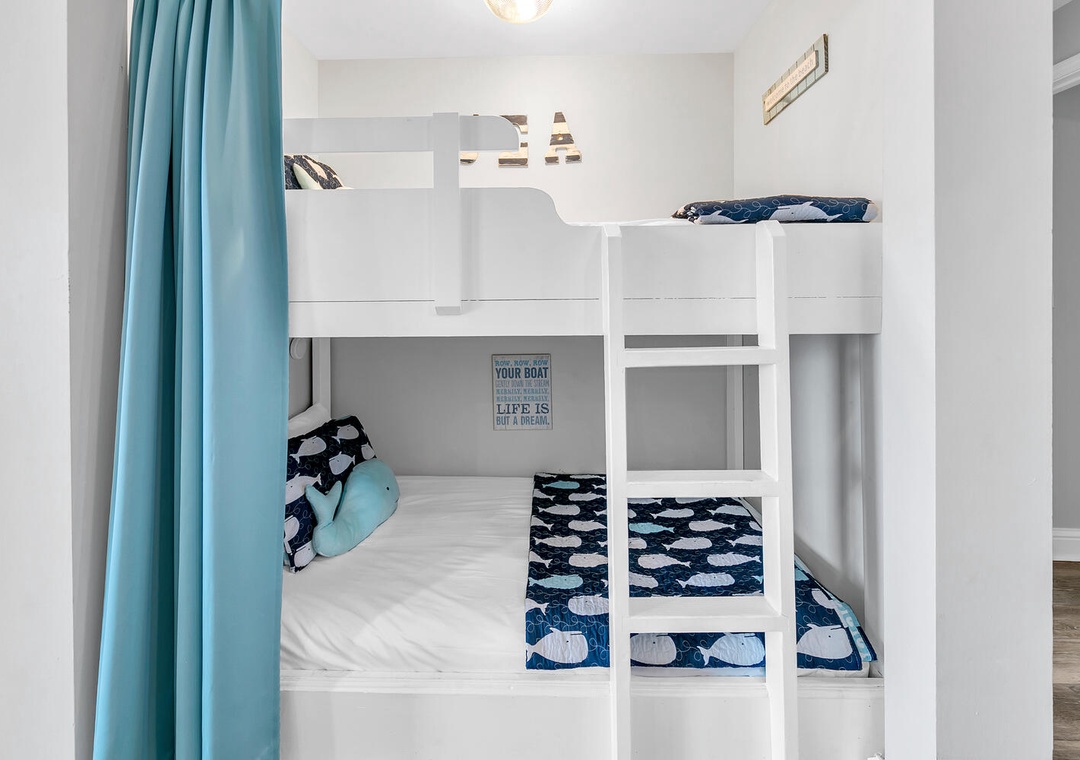 Welcome to your getaway at Aqua Resort 905, a beachfront condo located in the heart of the world’s most beautiful beaches! This 2-bedroom 2-bathroom condo features a spacious floor plan with a beautiful balcony and spectacular views! The dining area and well-appointed kitchen are the perfect spot to enjoy fabulous meals from your favorite restaurants or prepare home-cooked meals for your family and friends! You will find a king master bedroom, a queen guest bedroom, and twin over twin bunk beds in the hallway making this condo sleep 6 comfortably. Connect to the magic of the gulf and fulfill your beachfront vacation dreams at Aqua Resort 905!