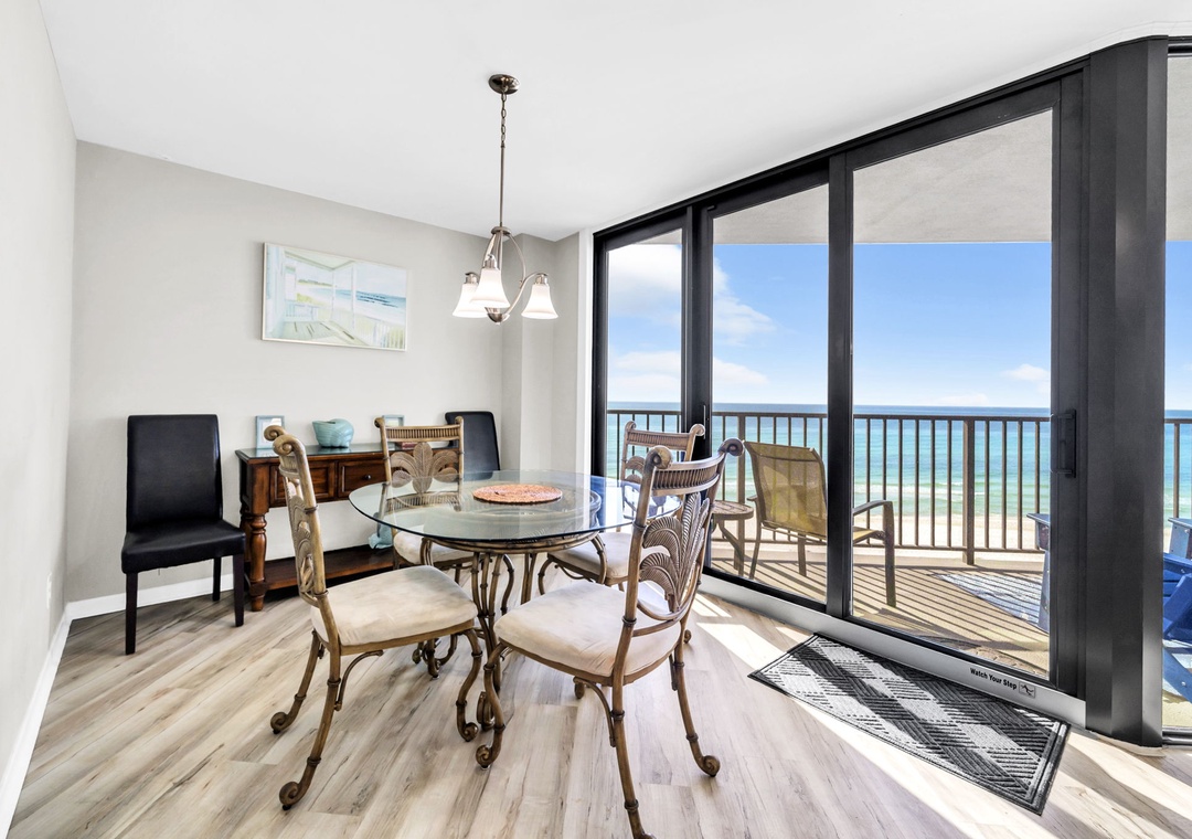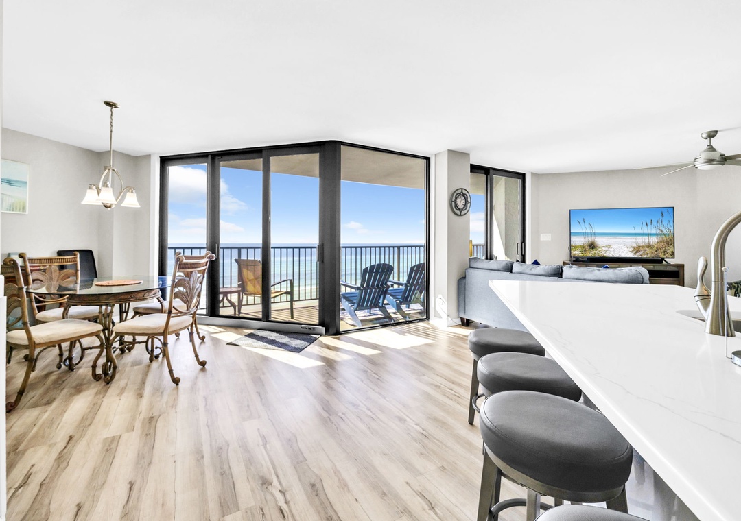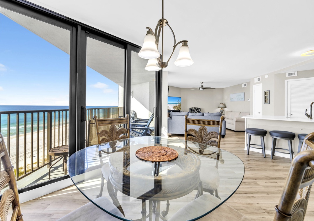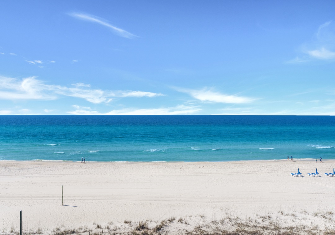 Welcome to Aquavista 603W – Your Beachfront Escape! Step into paradise at this beautifully appointed 1,200-square-foot 2-bedroom, 2-bath condo, perfectly situated right on the Gulf of Mexico. Just a few steps from the sugar-white sands and shimmering emerald waters of Panama City Beach, this coastal retreat offers everything you need for the ultimate beach getaway. Soak in breathtaking Gulf views through floor-to-ceiling windows in the living and dining areas, or relax on your private balcony as the sun rises over the water. The fully equipped kitchen features granite countertops and all the essentials, blending style with convenience for a true home-away-from-home experience. Comfortably sleeping up to 6 guests, this condo includes a spacious king master suite, a cozy queen guest bedroom, and a sleeper sofa in the living room—perfect for families or small groups. Whether you're savoring your morning coffee with a view, unwinding to the rhythm of the waves, or enjoying all the local attractions just minutes a