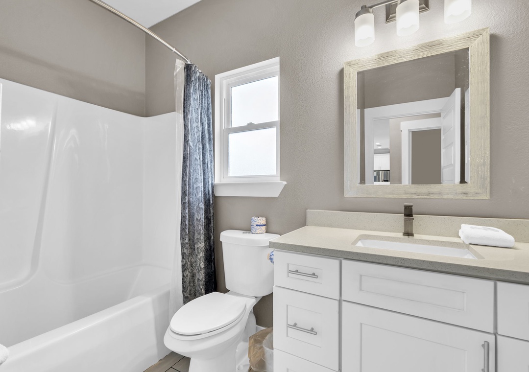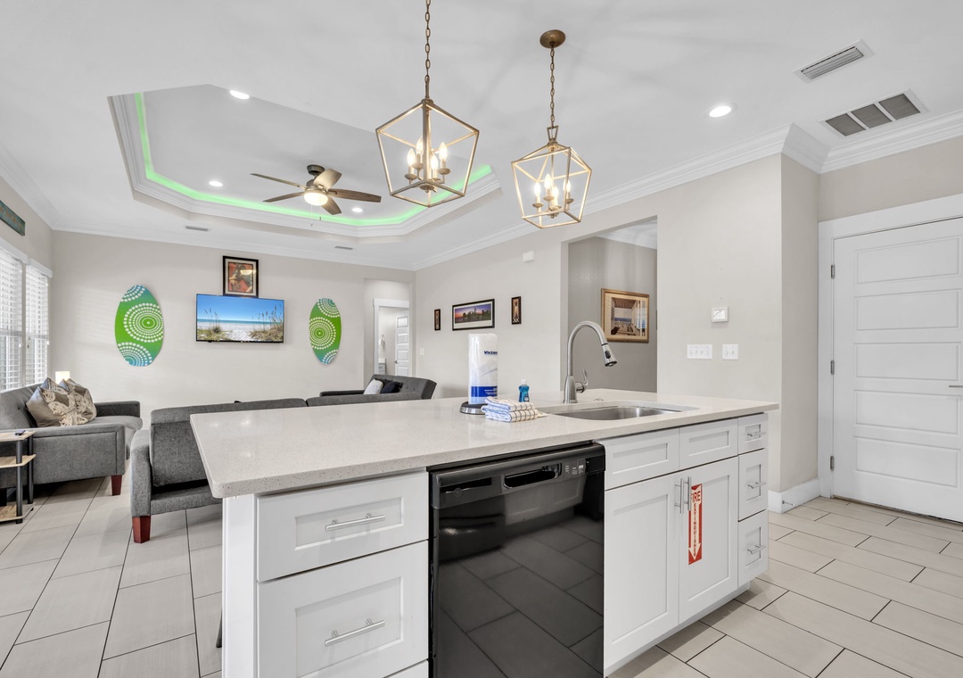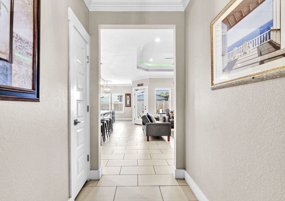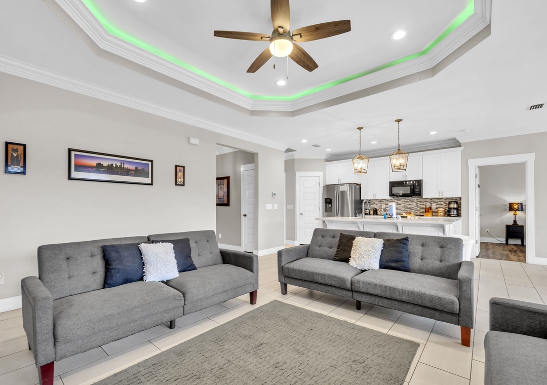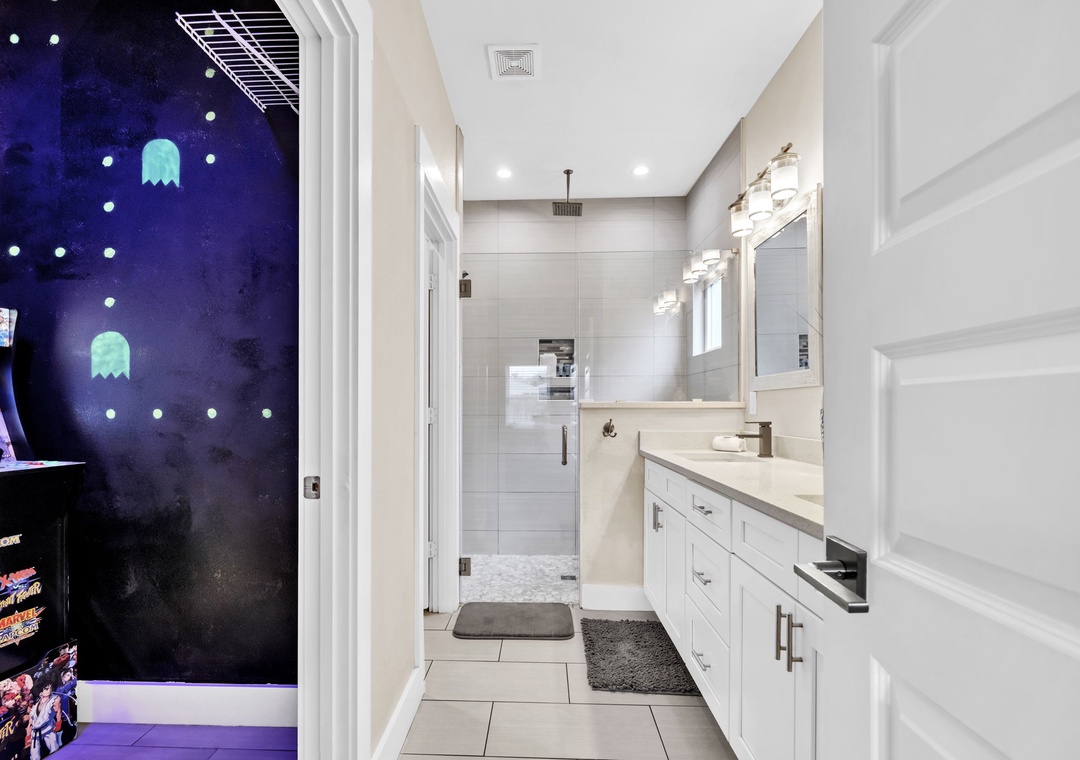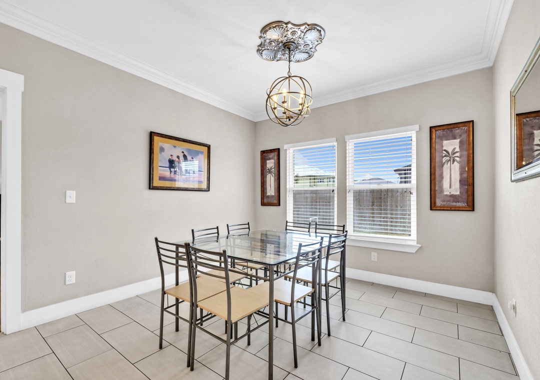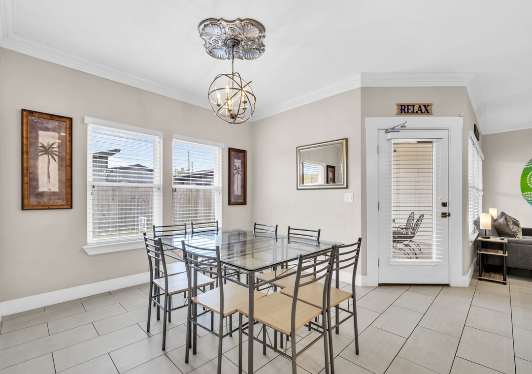 Welcome to Beachside Sunrise—your dream vacation home where comfort, relaxation, and fun come together perfectly! This beautifully appointed, single-story home features four spacious bedrooms and two full bathrooms, all set on a lushly landscaped corner lot with swaying palm trees in a golf cart-friendly community. Step into the private, fenced backyard—ideal for kids and pets to run and play while you unwind. Beachside Sunrise now features a cozy fire pit area with seating for six, two sets of brand-new outdoor couches on the covered back porch, and fun outdoor games including cornhole and ladder ball for guests to enjoy. Whether you’re gathering around the fire pit in the evenings, relaxing with morning coffee, or enjoying a little friendly competition, the outdoor space is designed for memorable moments and laid-back coastal living. Inside, the open-concept living room invites connection with three comfy sofas—perfect for family game nights, movie marathons, or watching your favorite shows on the large wall-mounted Smart TV. The master suite is a peaceful retreat, featuring a luxurious king bed and a spa-like en-suite bathroom with double vanities and a stunning zero-entry walk-in shower with a soothing rainfall showerhead. Two guest bedrooms each offer cozy queen beds, while a fourth bedroom is a fun-filled bunk room with triple twin bunks and arcade games—perfect for the kiddos! Two sleeper sofas in the living room allow up to 11 guests to stay comfortably. Whether you're sipping coffee at sunrise, gathering around the fire pit at night, or making family memories that last a lifetime, Beachside Sunrise is your perfect getaway. Book now and let the relaxation begin!