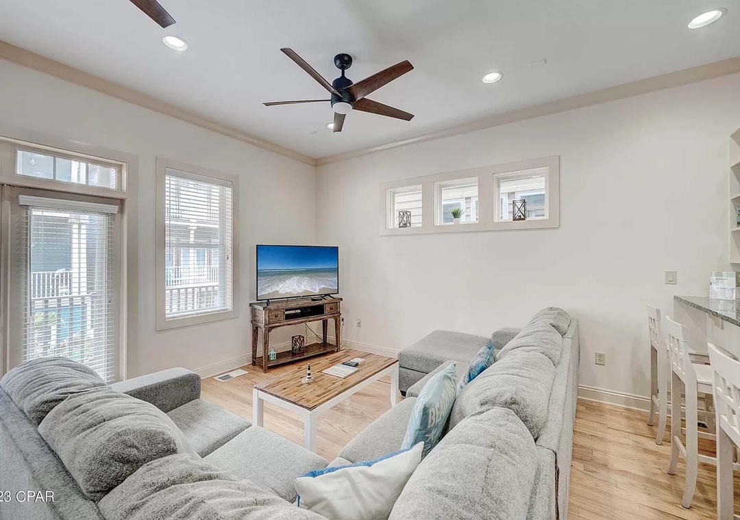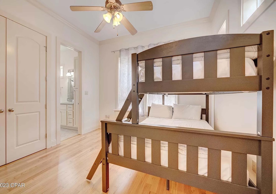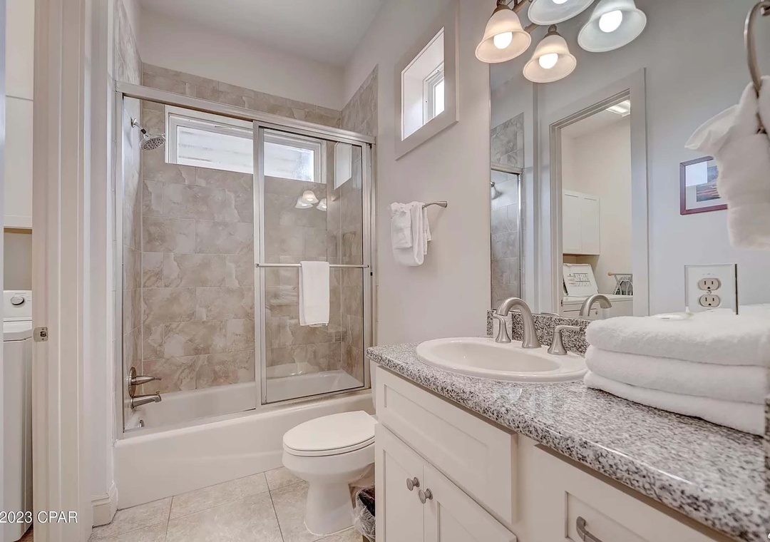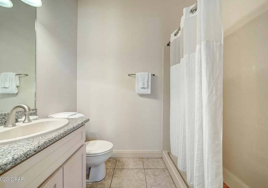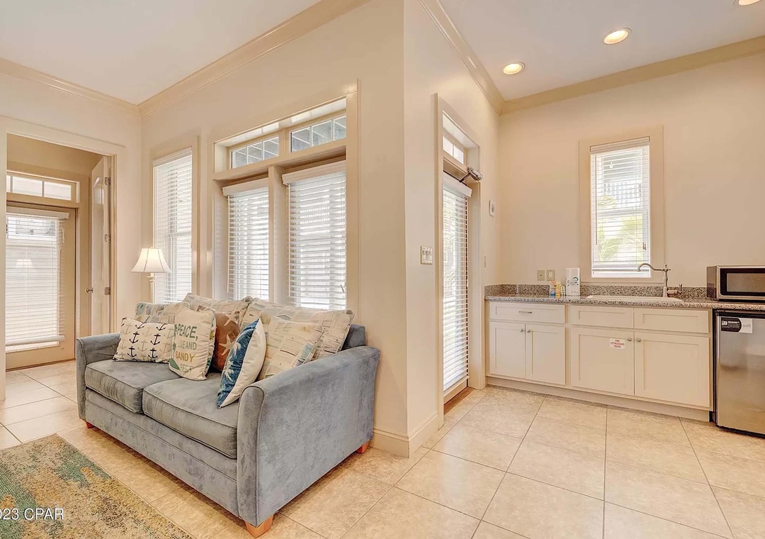Introducing Blue Lagoon, a charming 4-bedroom, 4-bathroom home ideally situated in the heart of East Panama City Beach. Just a short stroll away from beach access 12, this residence offers convenience and comfort. The first floor boasts a separate studio complete with a sleeper sofa, full bath, and kitchenette. On the upper levels, discover an expansive open floor plan accentuated by covered decks on each tier. The second floor hosts a well-appointed kitchen, laundry room, a welcoming living area with balcony access, and a guest bedroom featuring a twin-over-full bunk bed with an adjoining bathroom. On the third floor, indulge in the luxurious king master bedroom featuring an en suite bathroom and balcony access, alongside another guest bedroom featuring a twin-over-full bunk bed with its own attached bathroom. Take pleasure in breathtaking views while savoring a cup of coffee on one of the balconies. Additionally, the community offers a refreshing pool for your enjoyment. Create cherished memories at Blue Lagoon starting today.