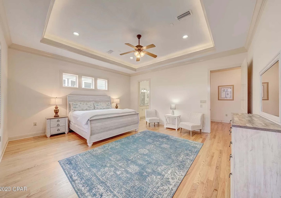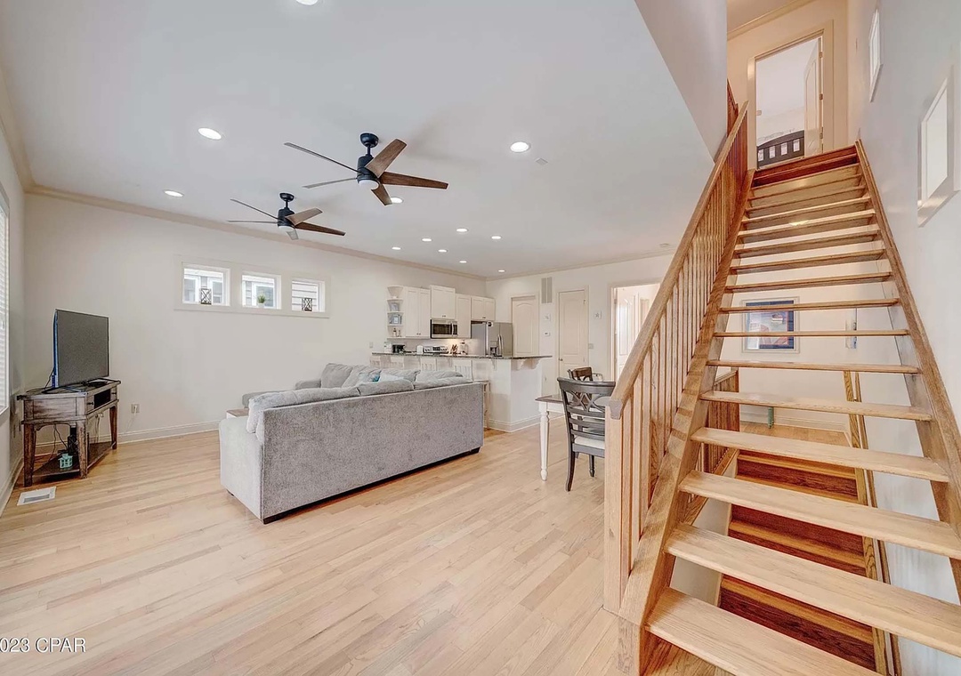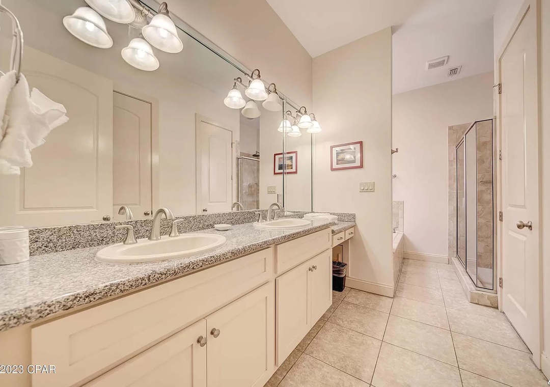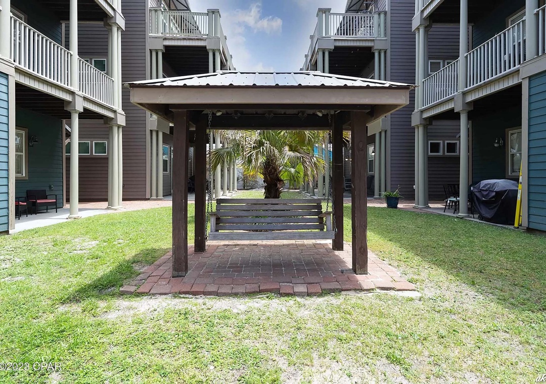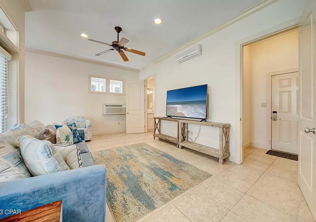 Introducing Blue Lagoon, a charming 4-bedroom, 4-bathroom home ideally situated in the heart of East Panama City Beach. Just a short stroll away from beach access 12, this residence offers convenience and comfort. The first floor boasts a separate studio complete with a sleeper sofa, full bath, and kitchenette. On the upper levels, discover an expansive open floor plan accentuated by covered decks on each tier. The second floor hosts a well-appointed kitchen, laundry room, a welcoming living area with balcony access, and a guest bedroom featuring a twin-over-full bunk bed with an adjoining bathroom. On the third floor, indulge in the luxurious king master bedroom featuring an en suite bathroom and balcony access, alongside another guest bedroom featuring a twin-over-full bunk bed with its own attached bathroom. Take pleasure in breathtaking views while savoring a cup of coffee on one of the balconies. Additionally, the community offers a refreshing pool for your enjoyment. Create cherished memories at Blue Lagoon starting today.