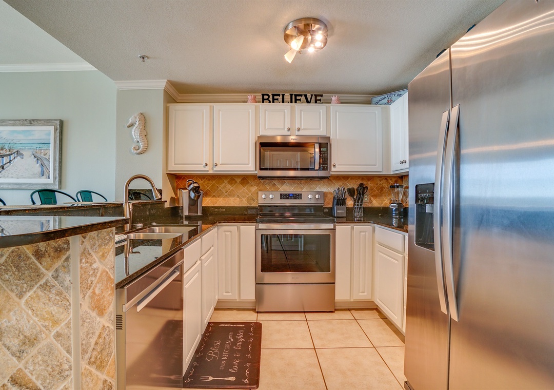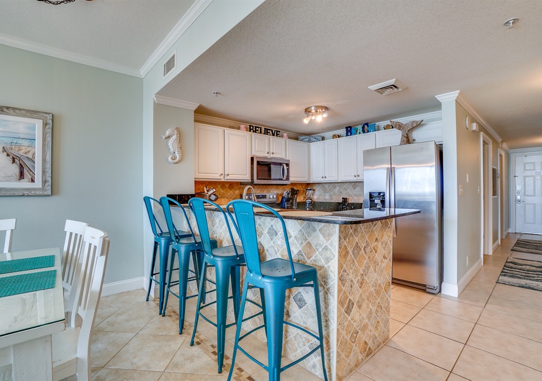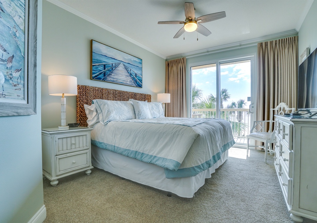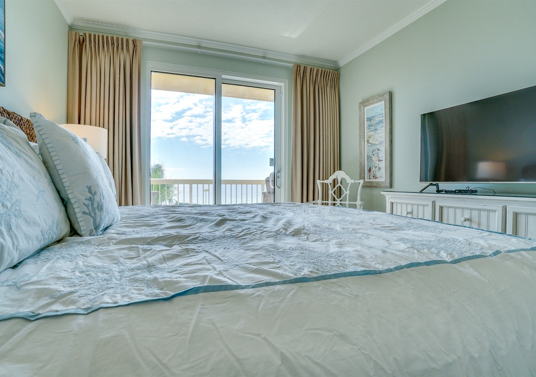 Whip up family favorites in the fully equipped kitchen, perfect for making meals and memories together. This spacious condo comfortably accommodates up to 9 guests, featuring a luxurious king master suite with a private ensuite bathroom, a cozy queen guest bedroom, a playful twin-over-full bunk bed in the third bedroom, and a convenient sleeper sofa in the living room. Whether you're lounging by the beach, enjoying the local attractions, or simply unwinding in style, Calypso 1-202 is your ideal home base for an unforgettable beach vacation. Come see why guests return year after year—where the views are stunning and the fun never ends!