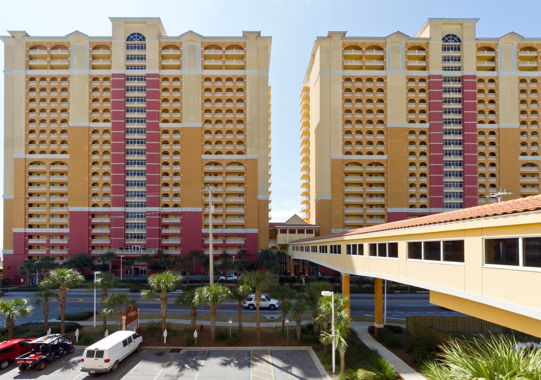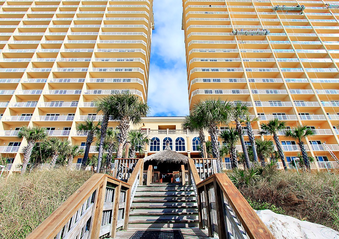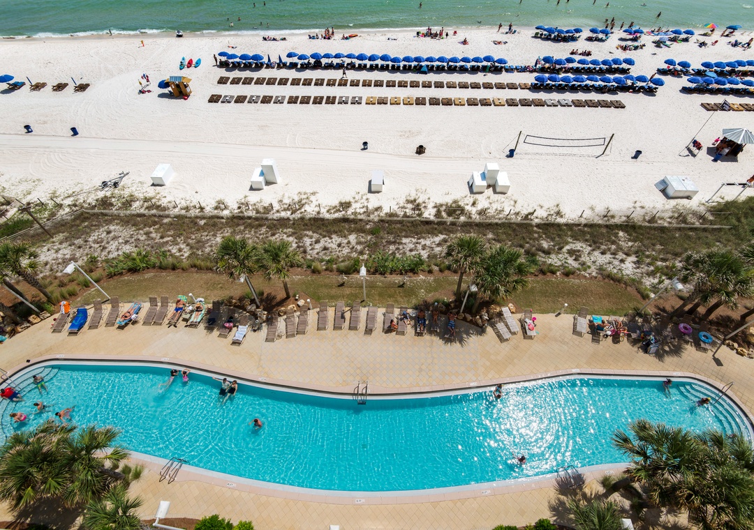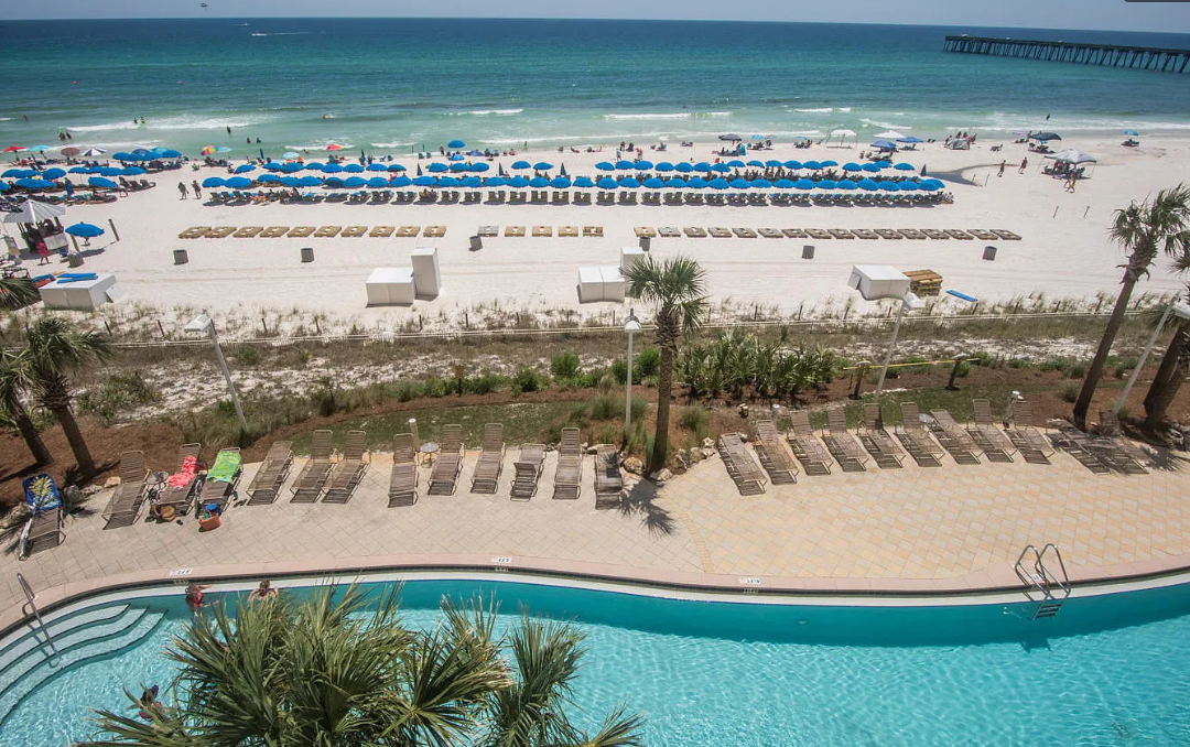 In the heart of Panama City Beach, Calypso Resort features TWO beachfront 23-story towers. The resort includes 2 large beachfront pools (seasonally heated), surrounded by a patio studded with palm trees, chaises, and tables where you can enjoy a snack or a game of cards while listening to the surf lap onto the sugar-white sands. There’s even a tiki bar in season, so you can enjoy a piña colada after your swim. And if swimming, kayaking, paddle boarding, canoeing, or windsurfing in the Gulf isn’t enough exercise for you, the complex also has a fitness center!