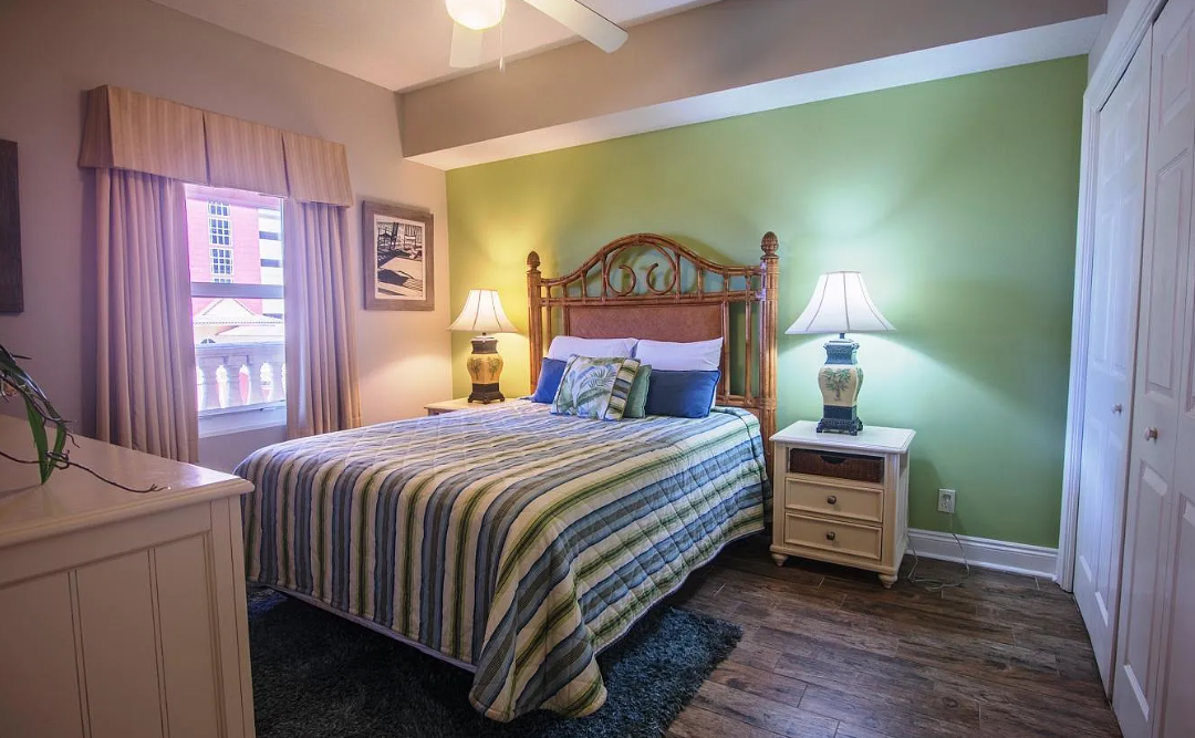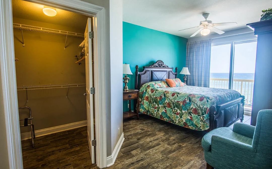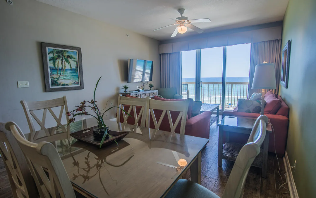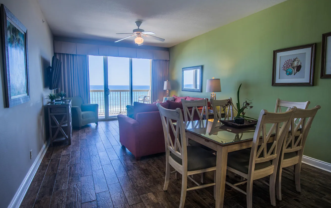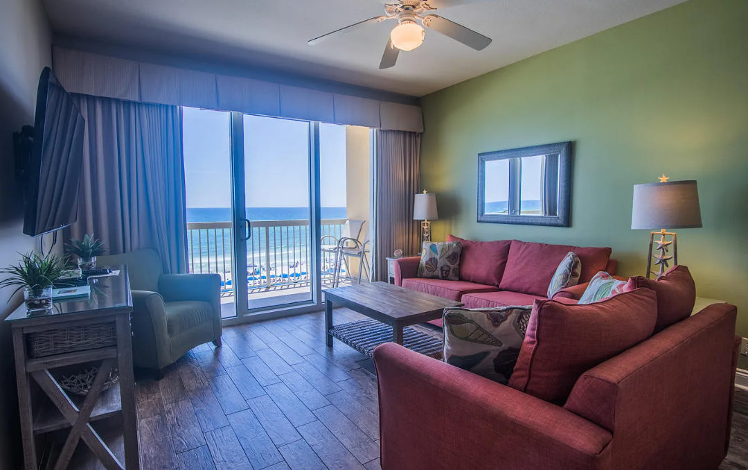 In the heart of Panama City Beach, Calypso Resort features TWO beachfront 23-story towers. The resort includes 2 large beachfront pools (seasonally heated), surrounded by a patio studded with palm trees, chaises, and tables where you can enjoy a snack or a game of cards while listening to the surf lap onto the sugar-white sands. There’s even a tiki bar in season, so you can enjoy a piña colada after your swim. And if swimming, kayaking, paddle boarding, canoeing, or windsurfing in the Gulf isn’t enough exercise for you, the complex also has a fitness center!
