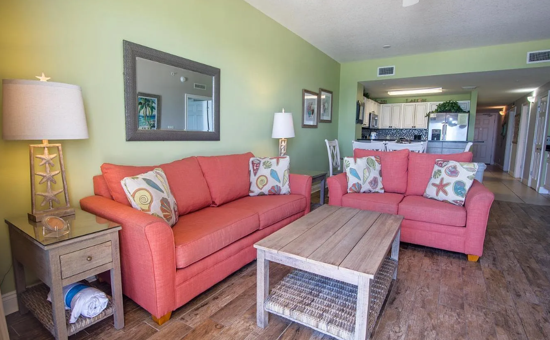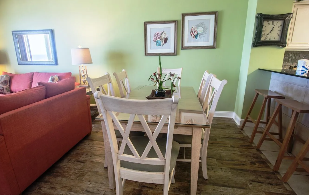 Calypso 2-404 invites you to experience the ultimate beachfront getaway in this beautifully designed Gulf-front condo that blends comfort, style, and unforgettable views. This spacious three-bedroom, two-bath retreat sleeps up to nine guests and offers the perfect setting to relax and reconnect. Wake up to panoramic views of the emerald Gulf waters and the shimmering pool below as you enjoy your morning coffee on the private balcony. Inside, the fully equipped kitchen makes it easy to prepare everything from quick breakfasts to family dinners, while the open living space provides a welcoming place to unwind after a day in the sun. The sleeping accommodations include a luxurious king master suite with a private ensuite bathroom, a comfortable queen guest room, a third bedroom with a twin-over-full bunk bed, and a sleeper sofa in the living area for added flexibility. Whether your days are spent on the sugar-white sand, exploring nearby attractions, or simply soaking in the coastal atmosphere, Calypso 2-404 serves as an ideal home base for a memorable beach vacation—one that keeps guests coming back year after year for the stunning views and endless fun.