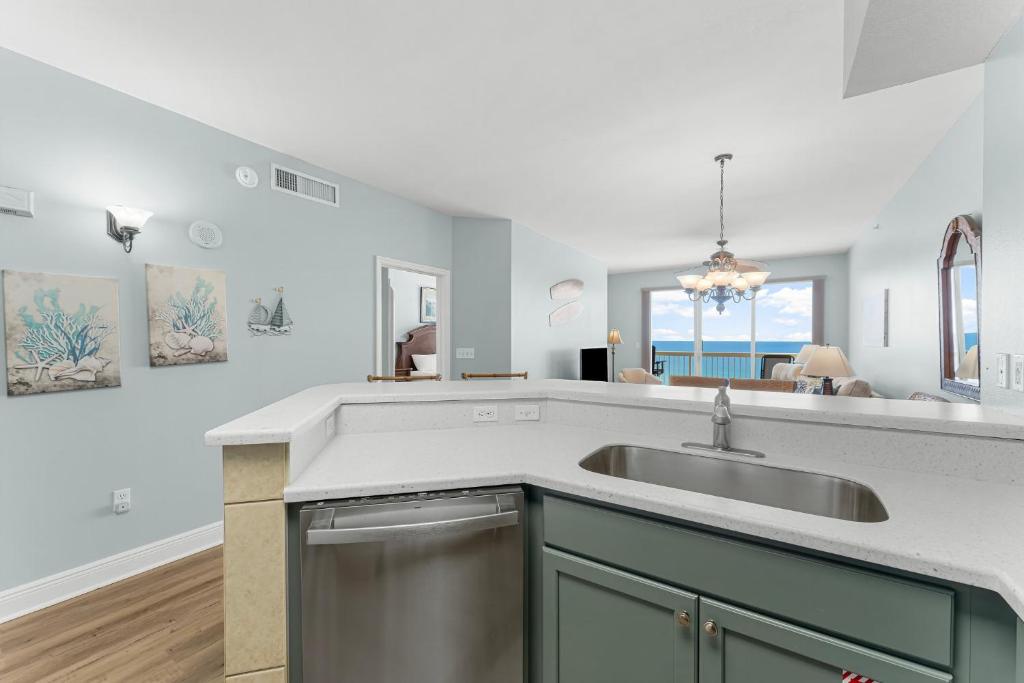 Welcome to Celadon 808, your perfect beachfront escape on the quiet west end of Panama City Beach. Tucked away from the crowds yet just minutes from dining, shopping, and local attractions, this beautifully updated 3-bedroom, 2-bath condo offers the ideal blend of relaxation and convenience. Comfortably accommodating up to 8 guests, the primary suite features a king-size bed, private balcony access, a spacious walk-in closet, and an ensuite bathroom with an oversized walk-in shower—perfect for unwinding after a day at the beach. The second bedroom includes a cozy queen bed, while the third bedroom offers a twin-over-twin bunk bed, making it a great option for kids or additional guests. A queen sleeper sofa in the living room provides extra sleeping space. The open-concept living area is stylish and inviting, with plenty of seating for everyone to gather and relax and direct access to the private balcony where you can enjoy stunning Gulf views, morning coffee, or sunsets. The fully equipped kitchen has everything you need to prepare delicious meals with ease. Whether you're here to unwind by the water or explore the best of Panama City Beach, Celadon 808 is the perfect place to start making lasting vacation memories.