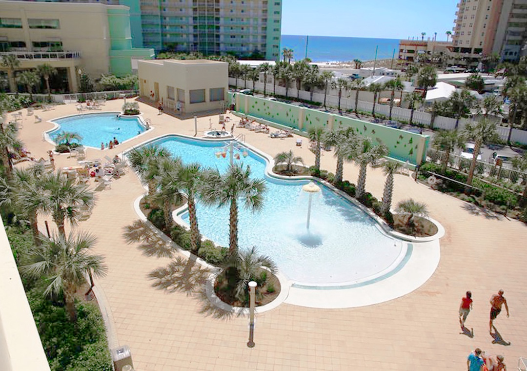 Built in 2007, it doesn’t get much better than Emerald Beach Resort! This modern, luxurious property boasts incredible views and offers a wonderful variety of amenities. Emerald Beach sits on 1,000 feet of Gulf-front property and is centrally located for easy access to all areas of the beach. It’s also within walking distance of Pier Park, and the resort’s walkover from the north side of Front Beach Rd. to the beach side features the well-known Sky Bar. Resort amenities include two outdoor swimming pools, two hot tubs, a tiki bar, a full-service Starbucks, a fitness center, and a 10,000 sq. ft. convention center. One of the outdoor pools is heated seasonally, typically from November through early March, depending on weather conditions and resort management discretion. Please note that the main beachfront pool is usually not heated, while the north (street-side) pool near the parking garage and Starbucks is the one heated during the cooler months.