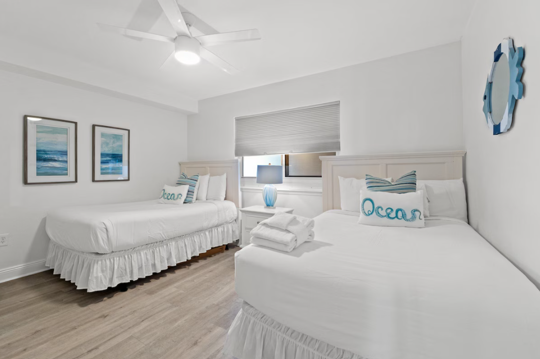 The Gulf-front master suite invites you to unwind in a plush king bed, while the second bedroom features two cozy double beds. Step outside to your private, furnished balcony and take in breathtaking beachfront views—your front-row seat to unforgettable sunsets. This beachfront escape comfortably accommodates up to eight guests and offers access to resort amenities, including a Gulf-front pool. Whether you’re planning a weekend escape or a longer stay, Emerald Beach #1736 is the perfect setting for creating lasting family memories. It’s easy to see why guests return year after year!