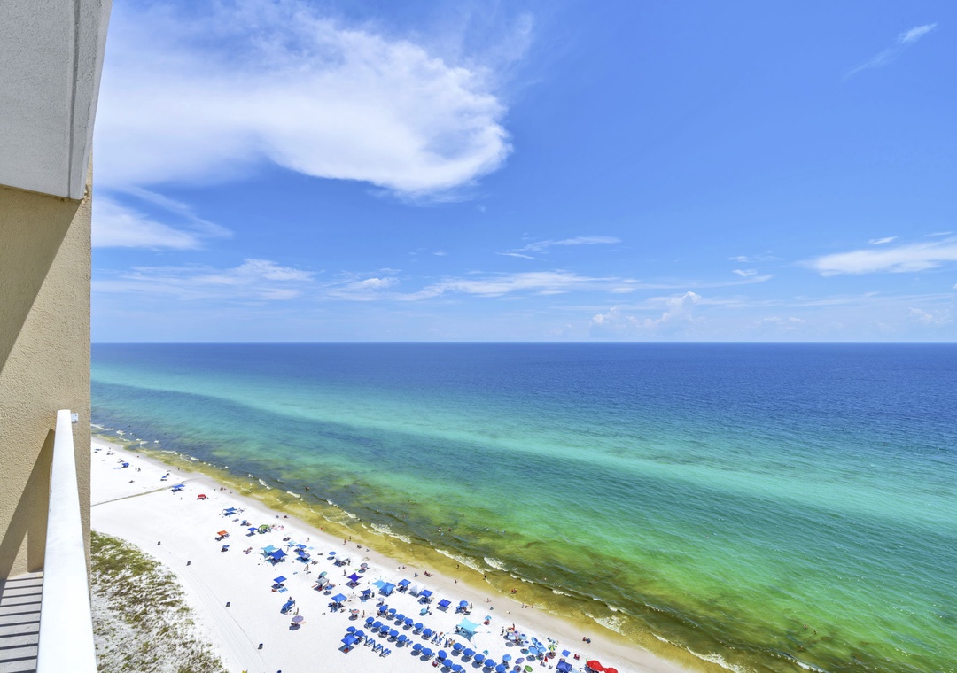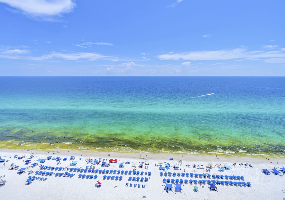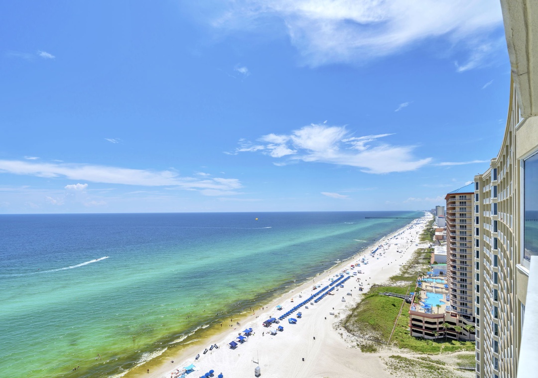 Built in 2007, it doesn’t get much better than Emerald Beach Resort! This modern, luxurious property boasts incredible views and offers a wonderful variety of amenities. Emerald Beach sits on 1,000 feet of Gulf-front property and is centrally located for easy access to all areas of the beach. It’s also within walking distance of Pier Park, and the resort’s walkover from the north side of Front Beach Rd. to the beach side features the well-known Sky Bar. Resort amenities include two outdoor swimming pools, two hot tubs, a tiki bar, a full-service Starbucks, a fitness center, and a 10,000 sq. ft. convention center. One of the outdoor pools is heated seasonally, typically from November through early March, depending on weather conditions and resort management discretion. Please note that the main beachfront pool is usually not heated, while the north (street-side) pool near the parking garage and Starbucks is the one heated during the cooler months.