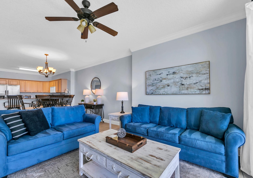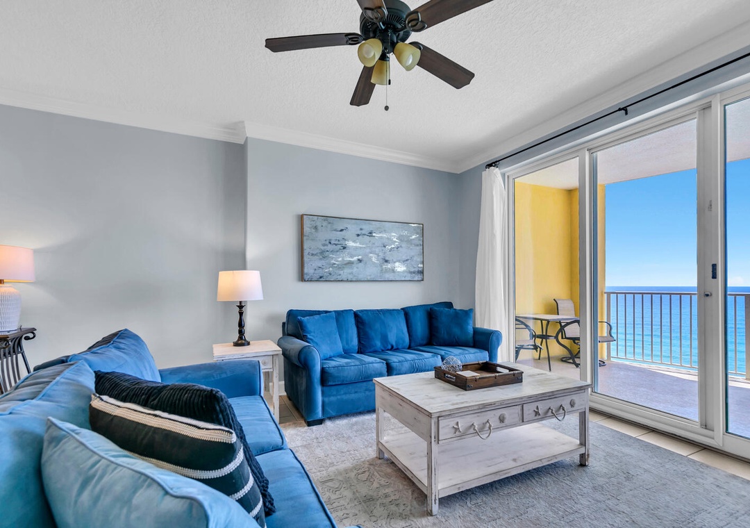 Welcome to Emerald Isle 1905, a charming 2-bedroom, 2-bathroom condo nestled on the west end of Panama City Beach. The bright and airy living room offers stunning Gulf views, providing the perfect space to relax and unwind. Whether you're brewing your morning coffee or preparing a full meal, the well-equipped kitchen has everything you need. This condo comfortably accommodates up to 8 guests, featuring a king bed in the master bedroom with balcony access, 2 full beds in the guest bedroom, and a sleeper sofa in the living room. Step outside and let the breathtaking beach view draw you down to the property’s two Gulf-front pools and hot tub, where you can soak your worries away. For those looking to stay active, the on-site fitness center and steam room are available for your use. Enjoy sweeping Gulf views from your spacious private balcony, the perfect spot for sipping coffee in the morning or cocktails at sunset. Discover why Emerald Isle 1905 is a favorite among Panama City Beach visitors!