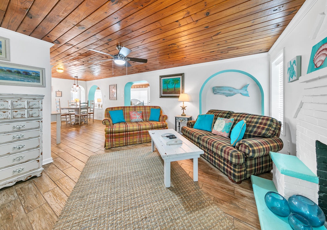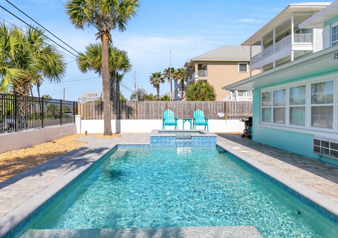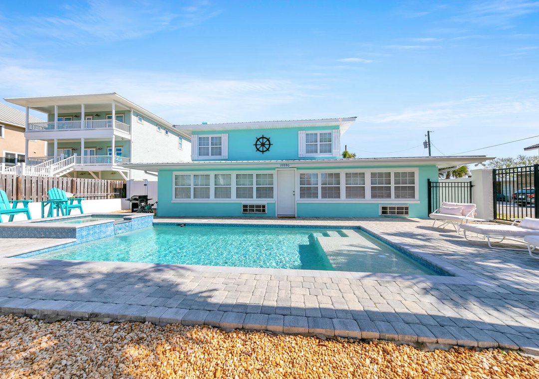 If It's The Beaches will captivate you with enchanting views. This home offers a combination of old Florida charm and modern amenities, and it features 3 bedrooms and 2 bathrooms. You will love the downstairs, which creates the perfect atmosphere for relaxing after a long day at the beach. This home features a queen master bedroom, a queen guest bedroom, a full guest bedroom, and a daybed with a trundle in the comma area, allowing it to sleep up to 8 guests comfortably. Relax in the heated spa that flows into the refreshing pool, perfect for both unwinding and cooling off. Plus, the spacious yard is ideal for family gatherings. Whatever you decide to do If It's The Beaches will show you why it is the perfect place for a relaxing beach experience.