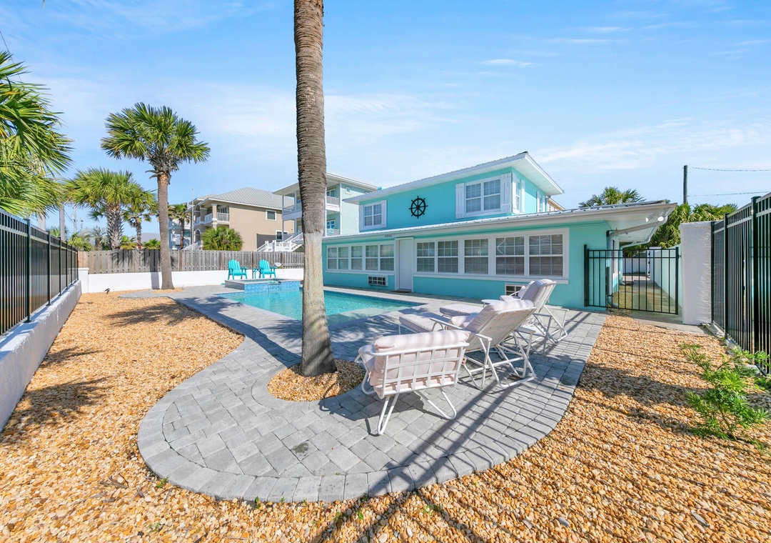 Kitchen has everything you need to prepare meals. The living space was so comfortable to gather for family time. Location was perfect, right across the street from the prettiest, cleanest beaches in Florida. The pool and hot tub were a great addition. The backyard was perfect for my 2 little dogs.- Reviewed On: 9/13/2025