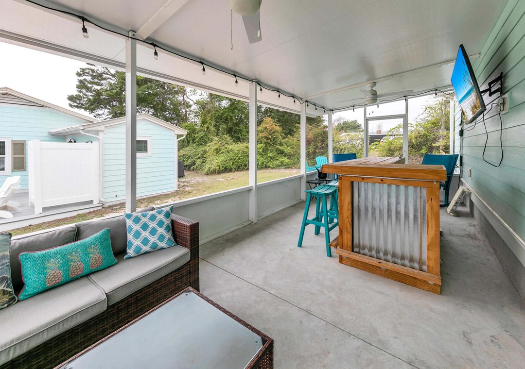 Welcome to Lah De Dah! Discover the ultimate beach retreat with this stunning 3-bedroom, 2-bathroom home, offering access to public beach less than a mile away. Prepare a delicious meal in the well-equipped kitchen. We have a king master bedroom, a king guest bedroom, a queen in guest bedroom 2, and a queen cot in the living room, making this home sleep 8 comfortably. We have a spacious screened-in porch that comes furnished with a bar, perfect for entertaining, and an outdoor shower. Included with the home is a golf cart, perfect for quick trips around the neighborhood or down to the shore. With all these features and more, this home is your key to a life of relaxation and coastal elegance. Come start making memories at Lah De Dah that will last a lifetime.