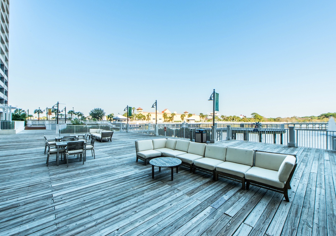 Laketown Wharf guests experience some of the best amenities at the beach, including 5 different and unique pools to choose from like a kid’s pool, teen pool, kiddie water area, and an adult pool! There is also 24-hour security, private beach access, a fitness center, a putting green, outdoor gazebos, lake, and beach views, a boardwalk, restaurants, a spa tub, and a spectacular fountain water show choreographed to music! For a bite to eat, enjoy Laketown Market, the perfect place to stop in for snacks and drinks, Paradise Pizza is available inside Laketown Market and can prepare all your favorite pizzas, Sunshine Bar and Grill has a full menu of delicious dining options for all ages, and Splash Bar is the ideal spot for relaxing by the pool with a drink in your hand! You can also have some fun at Shipwreck Island Waterpark about 2 miles away.
