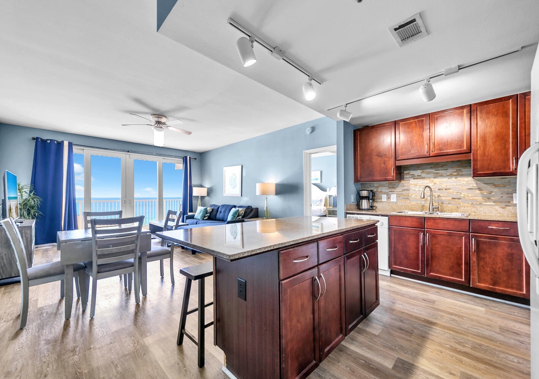 Enjoy spectacular views and easy beach access at Laketown Wharf 1608 - Turtle Tower in Panama City Beach! Laketown Wharf is an incredible destination with abundant amenities that appeal to all ages. This spacious 2BR/2BA condo with a bunk nook features a king bed in the master bedroom, a king bed in the guest room, a twin/twin bunk in the bunk nook, and a sleeper sofa in the living room, comfortably sleeping up to 8 guests. The kitchen offers breathtaking views while you prepare your favorite meal, and the open living room provides plenty of space to unwind and enjoy a movie on the flat-screen TV. Relax on the large balcony and take in amazing Gulf views. For added convenience, a washer and dryer are located within the condo. Come see why Laketown Wharf 1608 - Turtle Tower is the perfect choice for your next family beach vacation!
