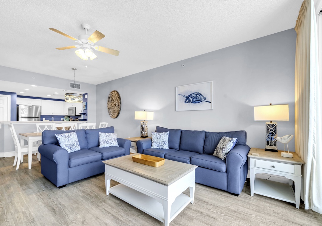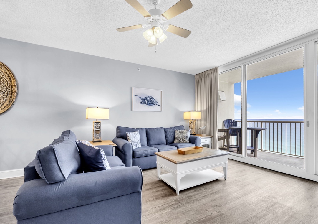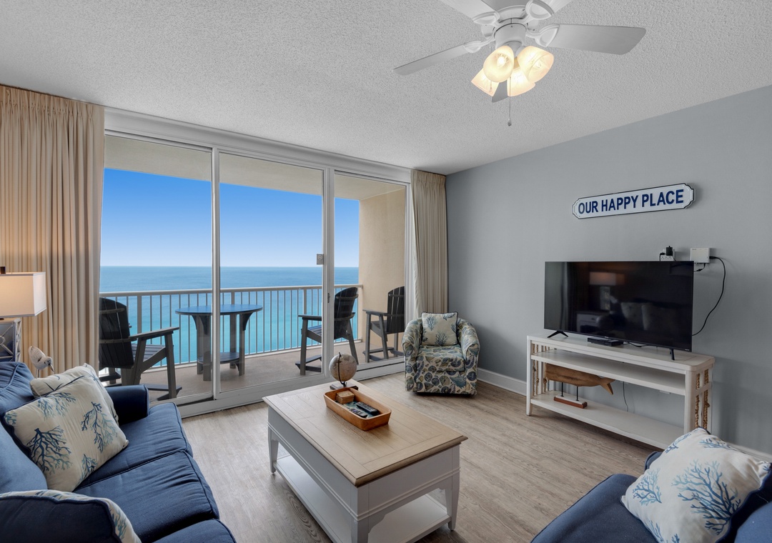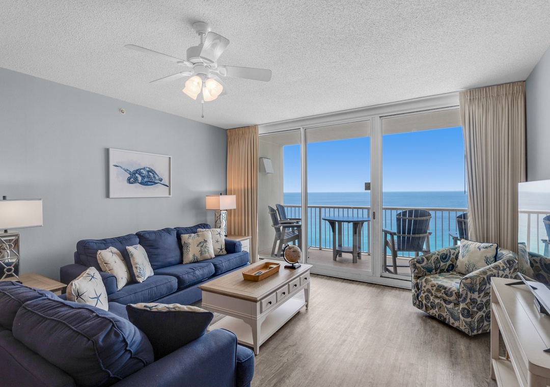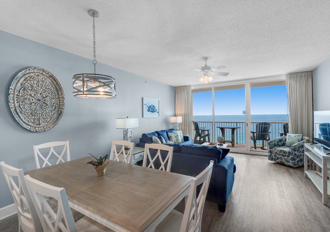 Welcome to paradise at Majestic Beach Towers 2-1703! This gorgeous 3-bedroom, 2-bath Gulf-front condo invites you to relax and unwind with sweeping views of emerald waters and sugar-white sands. Watch dolphins play in the surf each morning and take in unforgettable sunsets from your private balcony. The fully equipped kitchen makes everything from morning coffee to evening meals a breeze. The master suite offers a king bed and a private ensuite, while the guest room features a twin-over-double bunk bed. A sleeper sofa in the spacious living room comfortably brings the total sleeping capacity to 7 guests. With floor-to-ceiling windows framing the breathtaking Gulf, Majestic Beach Resort 2-1703 is your perfect beachfront retreat. Come see why this is more than just a vacation—it's a slice of coastal heaven.