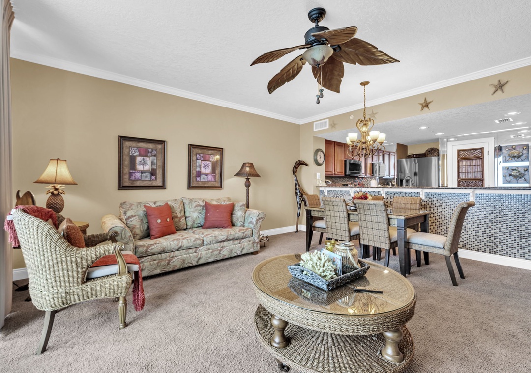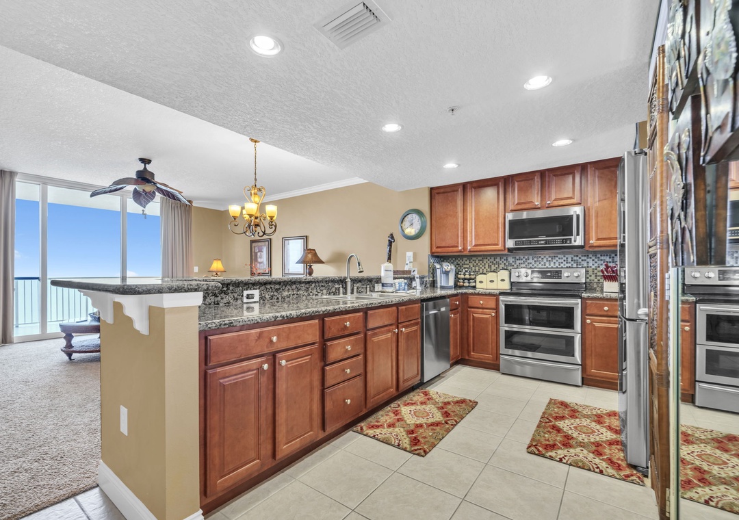 A sleeper sofa in the living room allows this spacious unit to comfortably accommodate up to 6 guests. Whip up your favorite vacation meals in the fully equipped kitchen, all while enjoying the coastal scenery. An in-unit washer and dryer add extra convenience to your stay. Stay active in the on-site Gulf Front fitness center or unwind by the tropical pool after a day at the beach. Whether you're soaking up the sun, swimming in the crystal-clear waters, or simply enjoying the view, Palazzo 1405 delivers the ultimate beach lifestyle experience.