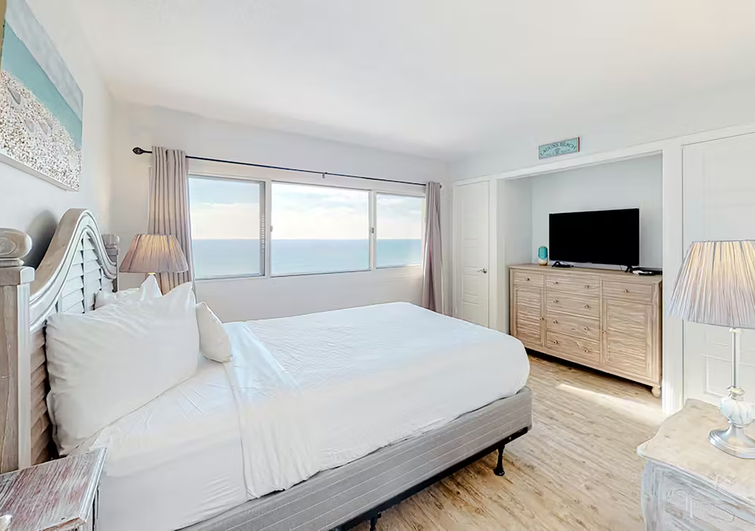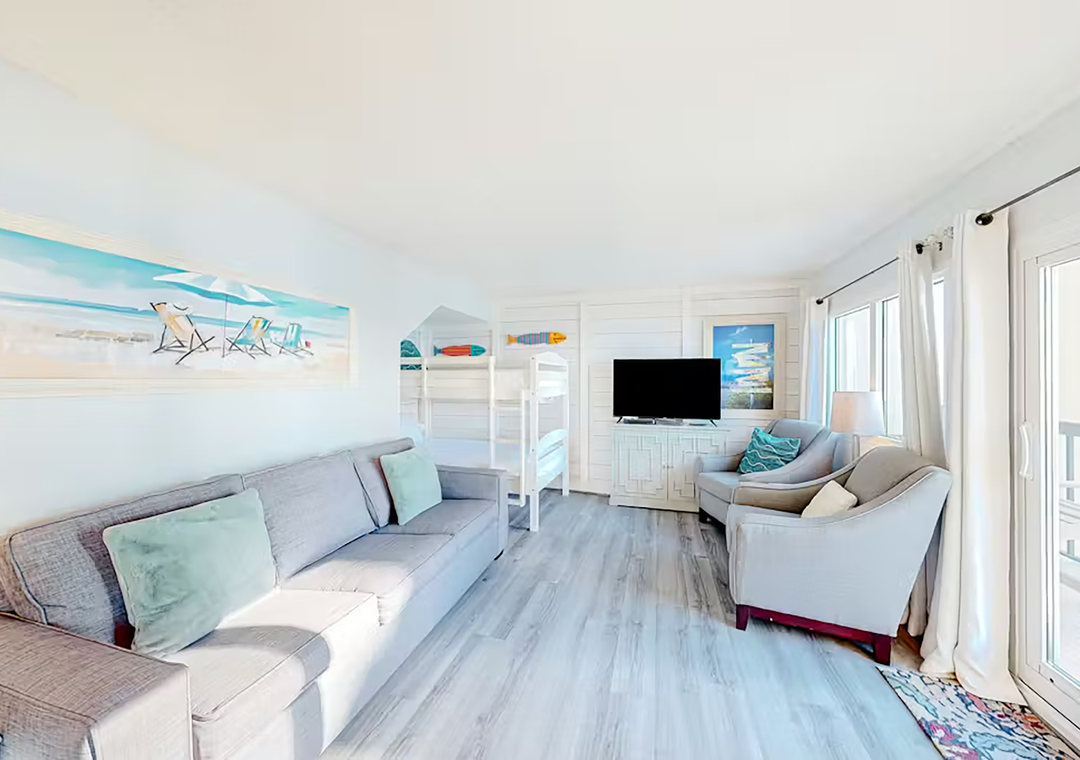 Welcome to Pinnacle Port A-929, a bright and inviting 2-bedroom, 2-bathroom condo filled with natural light and charming coastal decor. The spacious kitchen is perfect for creating delicious meals, which you can enjoy with a glass of wine or iced tea on your private 9th-floor balcony overlooking the sugar-white Gulf beaches. With a king bed in the master bedroom, a queen bed in the guest room, a twin-over-twin bunk nook, and a double sleeper sofa in the living room, this condo comfortably accommodates your entire group. Soak in incredible sunsets from the balcony and take advantage of fantastic community amenities, including two pools, saunas, barbecue grills, basketball courts, and more. Just steps from emerald waters and close to the popular Carillon Beach Market, Pinnacle Port A-929 offers everything you need to create unforgettable beach-vacation memories.