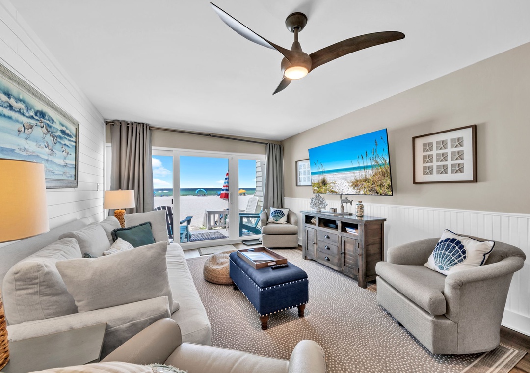 Welcome to Pirate Cove Villas #111 – Your Ideal Beachfront Escape! Step onto your private patio and take in the breathtaking Gulf views and soft white sands just steps away. This spacious 2-bedroom, 2.5-bath condo features an open floor plan that showcases the stunning gulf-front scenery from the moment you walk in. Cook up your favorite meals in the fully equipped kitchen and sip your morning coffee as you watch the sun rise over the water. The master suite offers a king-size bed and direct access to the balcony with sweeping ocean views, while the guest bedroom provides two comfortable queen beds—perfect for families or groups. With room for up to six guests, this coastal retreat has everything you need for a relaxing getaway. Discover the charm of Pirate Cove Villas #111 and make it your favorite vacation tradition year after year!