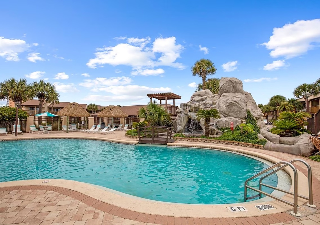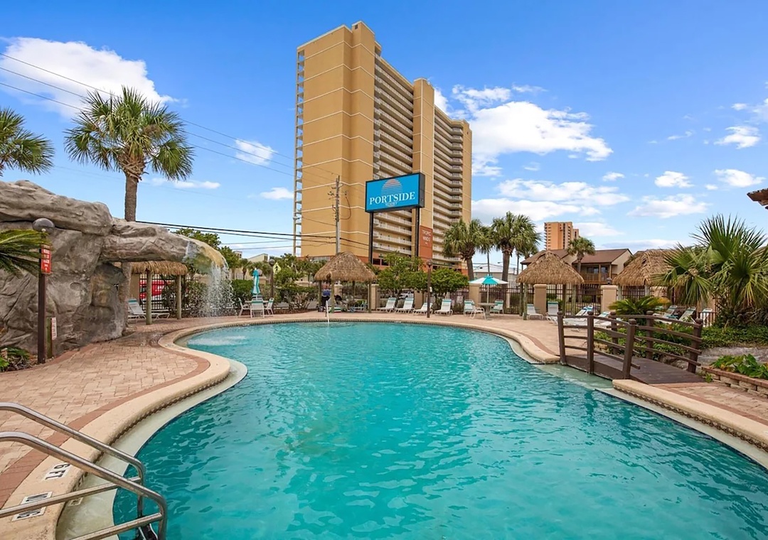 Located only 3 miles from Pier Park, Portside Resort sits on 16 acres and offers easy beach access right across the street. So, you will find sugar-white sands and emerald waters only a short walk away. This complex has 3 community pools on site (one seasonally heated), 3 tennis courts, a shuffleboard area, a hot tub, and a clubhouse. Being on the quiet west end and covered in beautiful palm trees and peaceful landscaping, Portside Resort is idyllic for families seeking a calm, relaxing beach experience.
