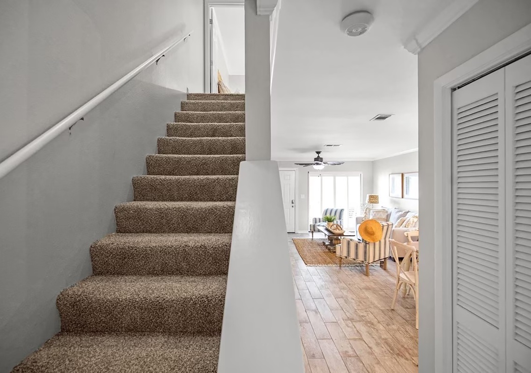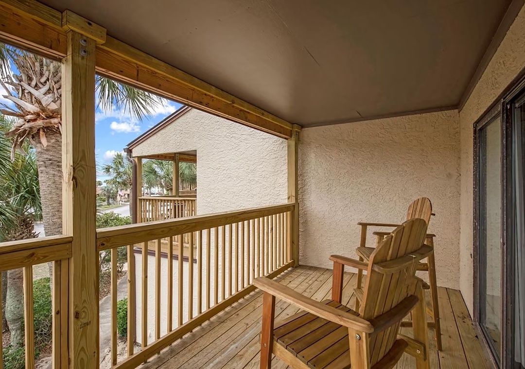 Welcome to your getaway at Seabreeze Townhome, a 2-bedroom 2 bathroom townhome located in the quiet west end of Panama City Beach. Located on the ground floor for the ultimate convenience and parking at the door, you'll love the spacious living area with a Smart TV, sleeper sofa, and a duo of chairs for seating comfort. Up one flight of steps, you'll find the king master bedroom with a Smart TV, wet bar, and a bedroom balcony offering a partial gulf view in the distance. There is also a guest bedroom with 2 double beds. This unit sleeps 6 comfortably. The kitchen is fully equipped, and there is plenty of seating in the dining area. Nestled within Portside Resort, this unit has access to loads of amenities including 3 community pools, 3 tennis courts, shuffleboard areas, and more. Come make Seabreeze Townhome your family vacation tradition; the beach is waiting!