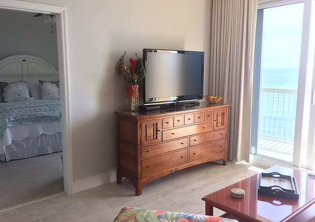 Conveniently located on the family-friendly, eastern end of Thomas Drive, the beach in front of Seychelles is fabulous! It's wide and deep and reminds one of "old Florida". Less than a mile away is gorgeous St. Andrews State Park. Grand Lagoon touches the park to the north and to the south, the beautiful Gulf. Swimming and fishing are great at the park without the large crowds!