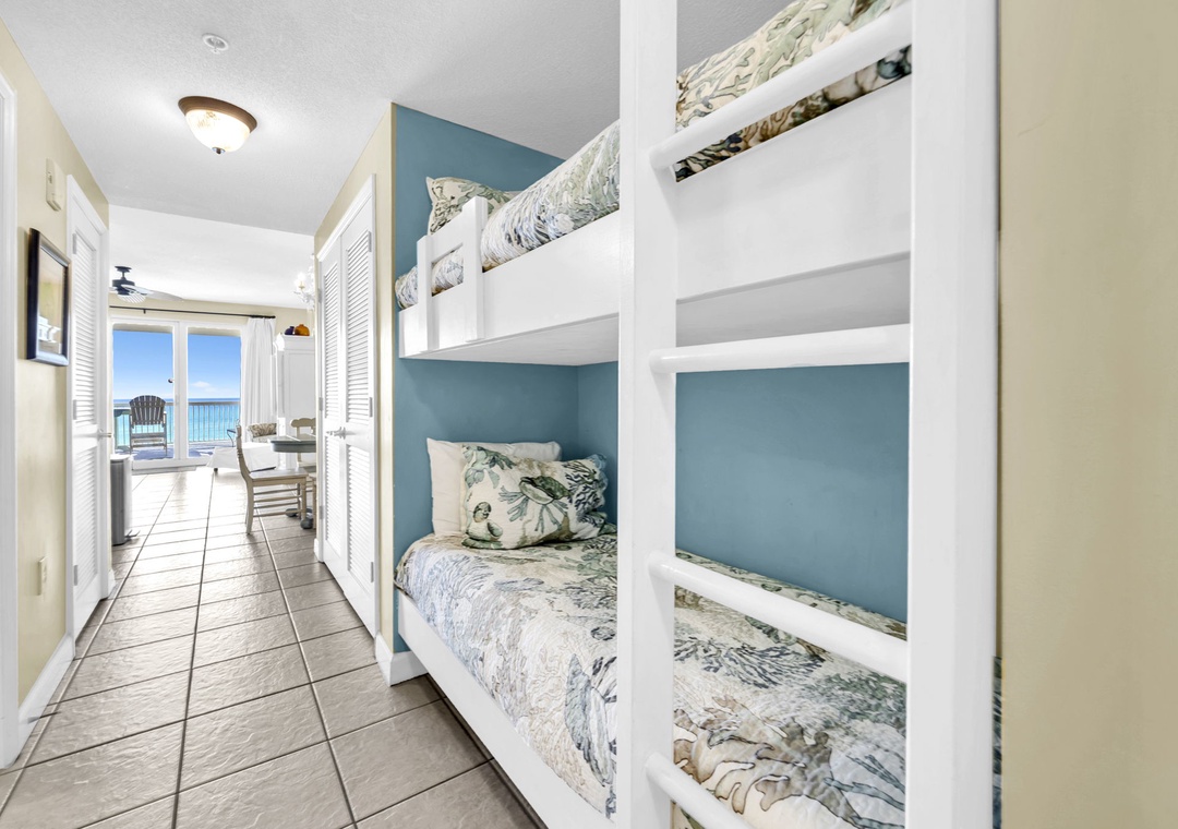 Welcome to Seychelles 602, your ideal beachfront retreat in the heart of Panama City Beach. This bright and spacious 1-bedroom, 2-bath condo comfortably accommodates up to six guests, making it perfect for families or couples traveling together. The master suite features a cozy queen bed, while twin-over-twin bunk beds are tucked neatly into the hallway. A queen sleeper sofa in the living area provides additional sleeping space. Enjoy preparing meals in the fully equipped kitchen, then step onto your private balcony to savor your morning coffee while soaking in stunning Gulf views—and keep an eye out for playful dolphins passing by. An in-unit washer and dryer add extra convenience to your stay. As a guest in Seychelles, you’ll also have access to two beachfront pools and an on-site fitness center, giving you the perfect balance of relaxation and recreation. Plan your next unforgettable beach escape at Seychelles 602—where comfort meets coastal charm.