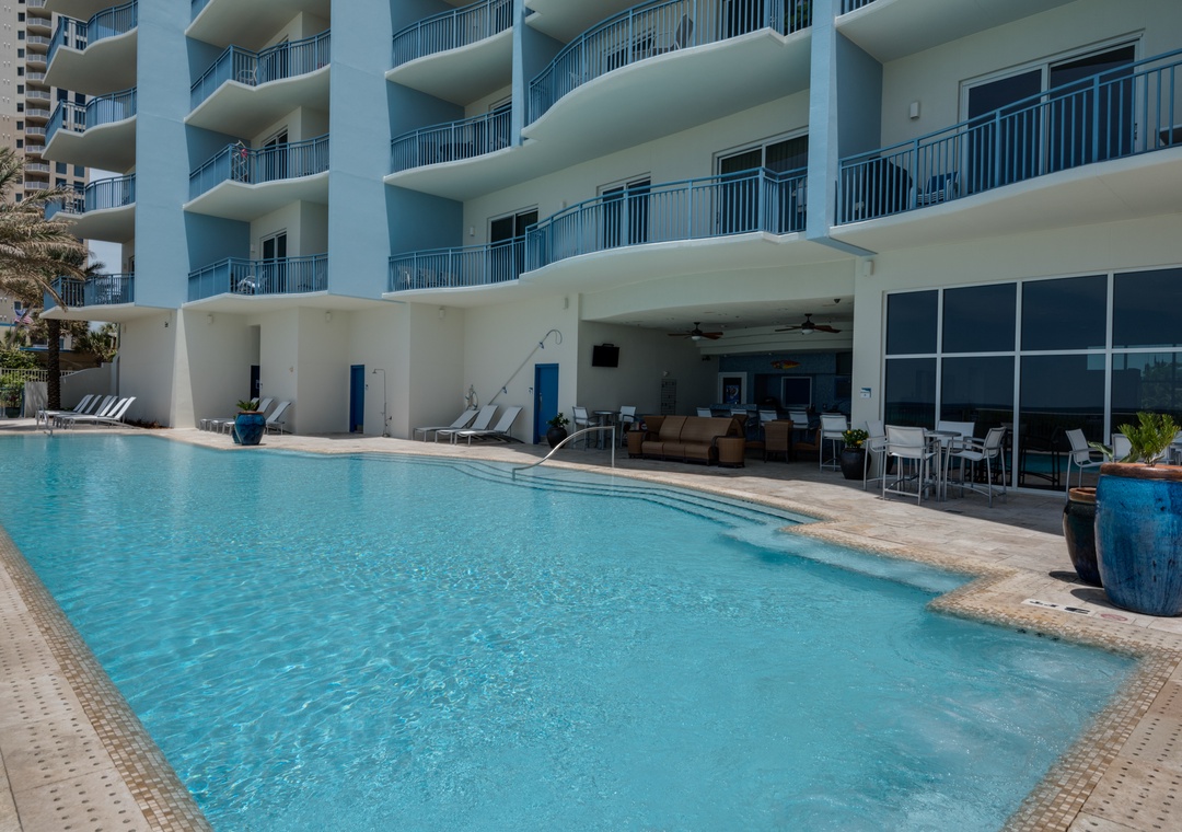 * Poolside wine bar and cafe, and fitness center!