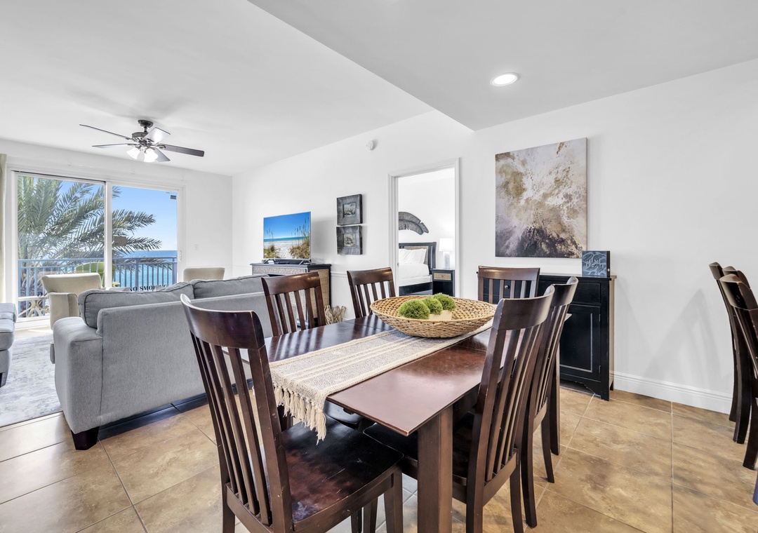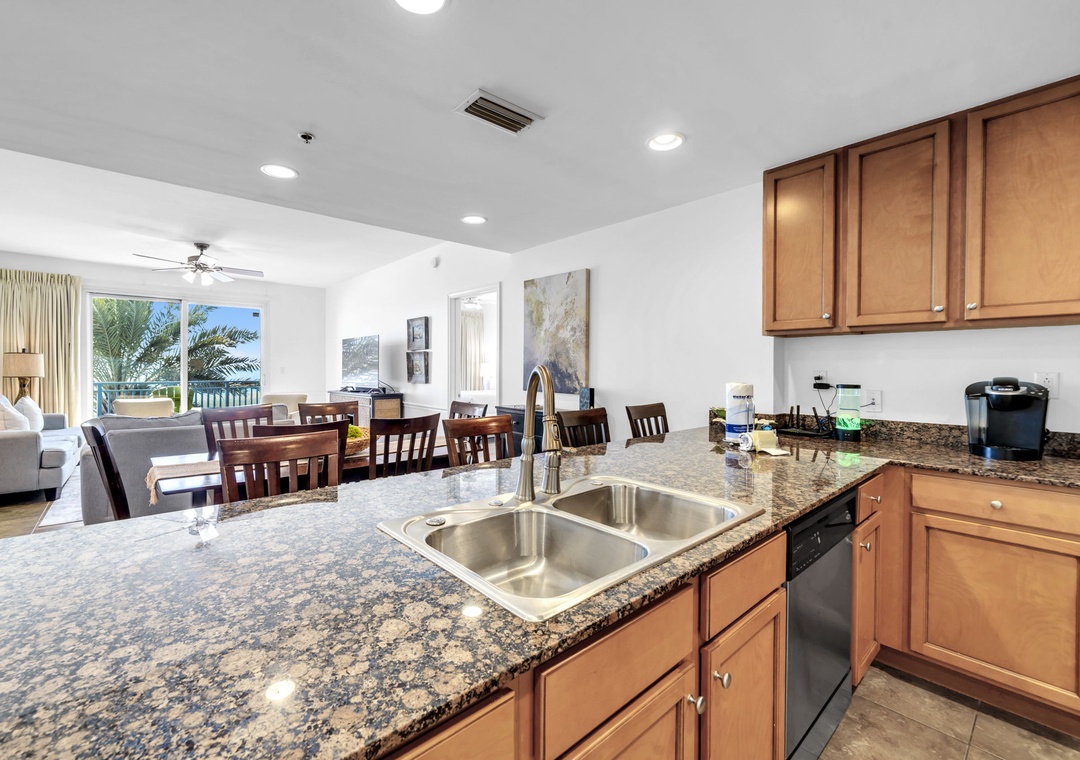 Escape to Sterling Breeze 307B, your perfect beachfront haven. This spacious 2-bedroom, 2-bathroom corner condo boasts sweeping panoramic views of the Gulf of Mexico from almost every room. Floor-to-ceiling windows flood the space with natural light, showcasing the sugar-white sands and emerald waters just beyond your private balcony. Unleash your inner chef in the fully equipped kitchen, complete with modern appliances, sleek countertops, and a convenient breakfast bar. The master suite offers a peaceful retreat with a plush king bed, private balcony access, and a spa-like en suite bathroom featuring a walk-in shower. The guest bedroom includes a twin-over-twin bunk bed and a queen bed—perfect for families or groups. With comfortable accommodations for up to six guests, this condo is designed for relaxation and connection. Begin each morning with coffee on the Gulf-front balcony as the waves set the tone for a perfect day. Whether you're here to unwind, explore, or make cherished memories, Sterling Breeze 307B provides the ideal backdrop for your next unforgettable getaway.