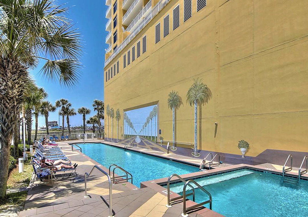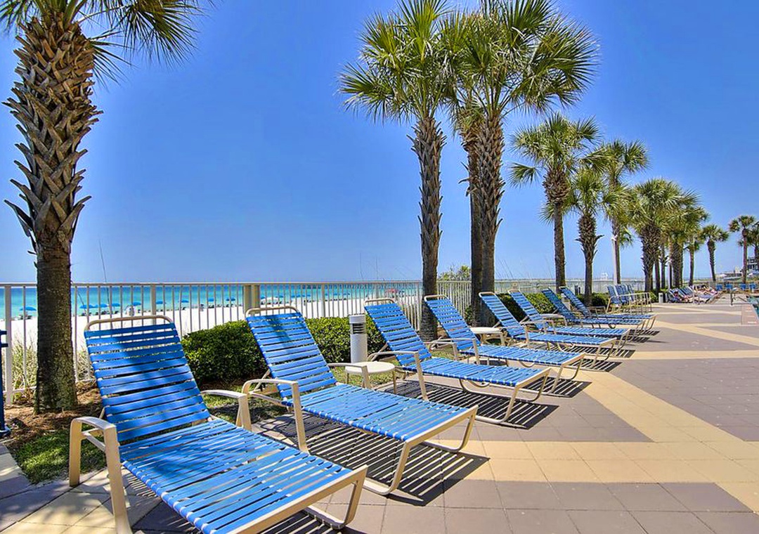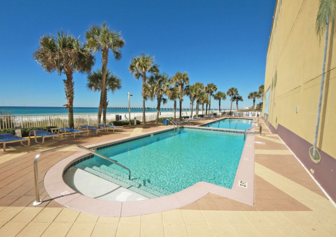 Built in 2005, Sterling Reef is in a fantastic location on Panama City Beach, only .5 miles from Shipwreck Island and within walking distance of the fishing pier. Vacation rentals at this lovely resort have a seasonally heated 4000sqft bi-level pool with a waterfall at their disposal, a fitness center overlooking the pool and beach area, an activity room with/ flatscreen TV, and grills on the sky terrace. Watersport rentals are also available.