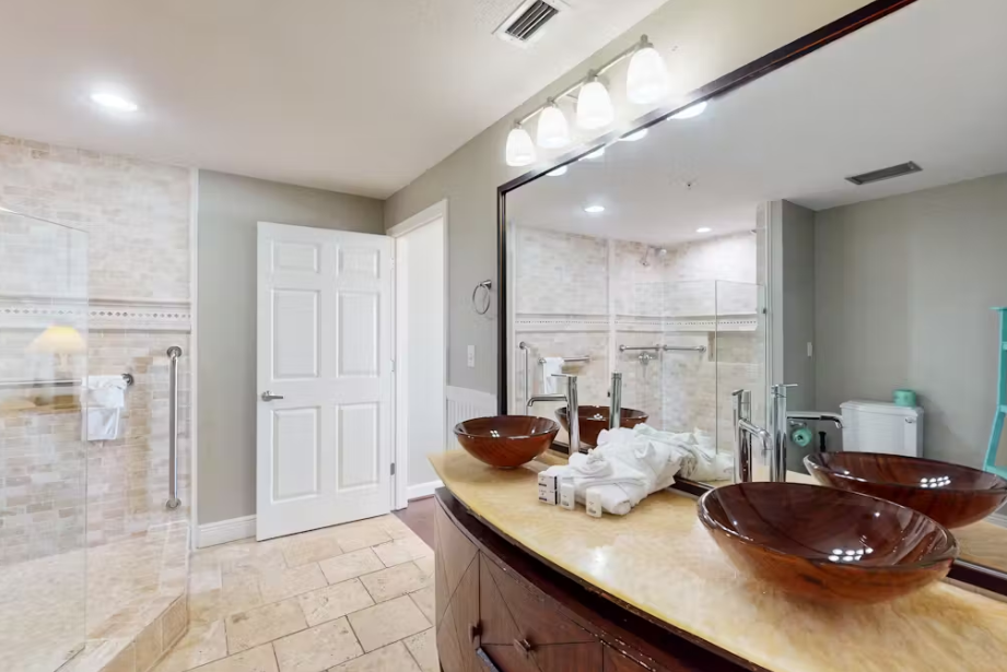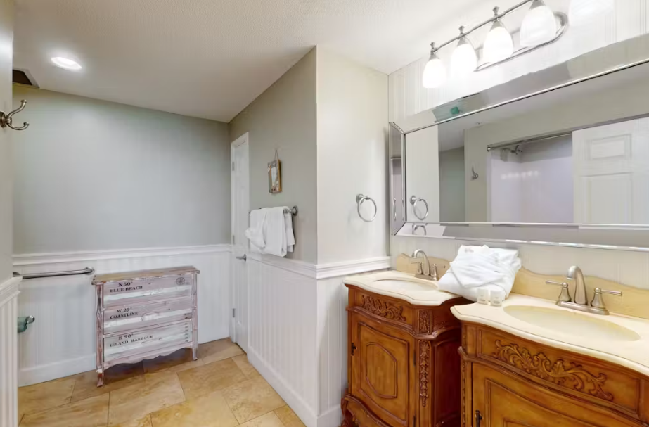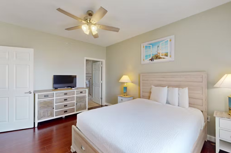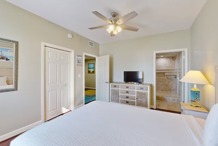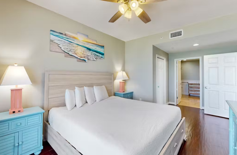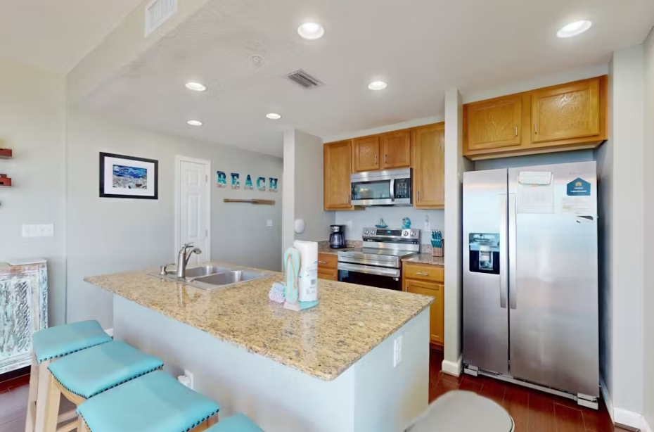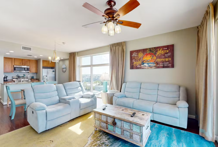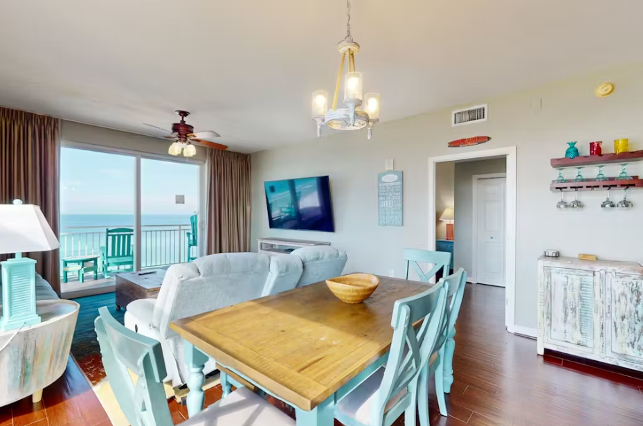 Welcome to Sterling Reef 501 – your stylish beachfront escape in the heart of Panama City Beach! Located on the 5th floor, this beautifully appointed resort condo offers breathtaking views of the emerald waters and sugar-white sands of the Gulf of Mexico. Whip up your favorite meals in the sleek, fully equipped kitchen, then unwind in the open-concept living and dining areas with uninterrupted Gulf views. Step out onto the spacious beachfront balcony, accessible from both the living room and the primary suite, and soak in the fresh ocean breeze and stunning panoramic scenery. The primary suite offers a serene retreat with a king bed and a spa-inspired bathroom, featuring a custom oversized tiled shower and elegant bowl-top vanities. The guest bedroom includes a cozy queen bed, while an additional room with twin bunk beds makes this condo perfect for groups or families, sleeping up to 8 guests comfortably. During your stay, take advantage of the resort's shared amenities, including a beachfront pool and a well-equipped fitness room. Whether you're here to relax or explore, Sterling Reef 501 is your ideal home base for making unforgettable beachside memories.