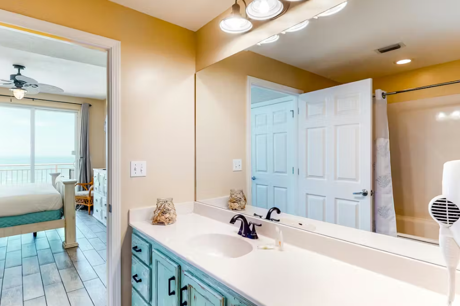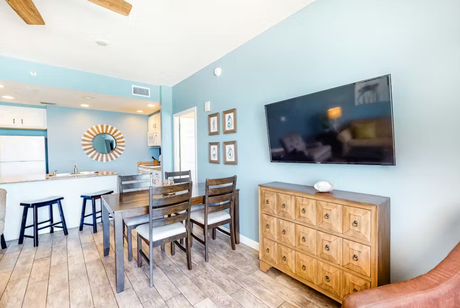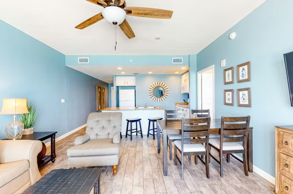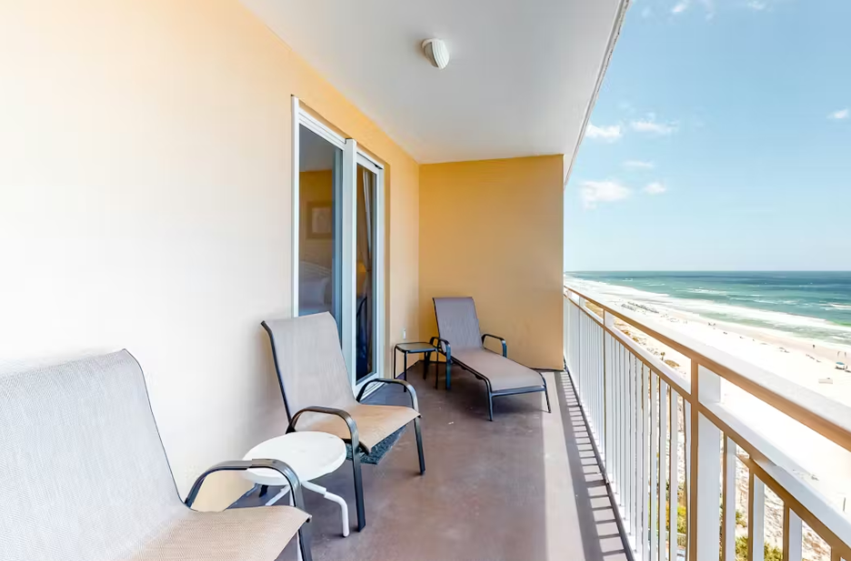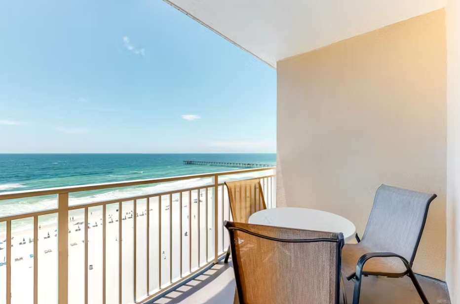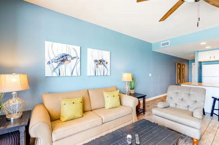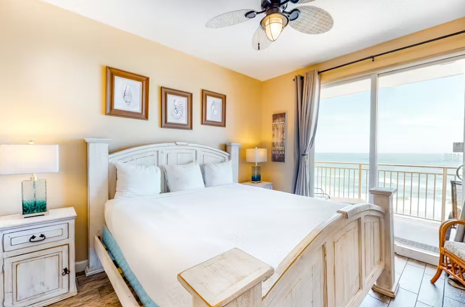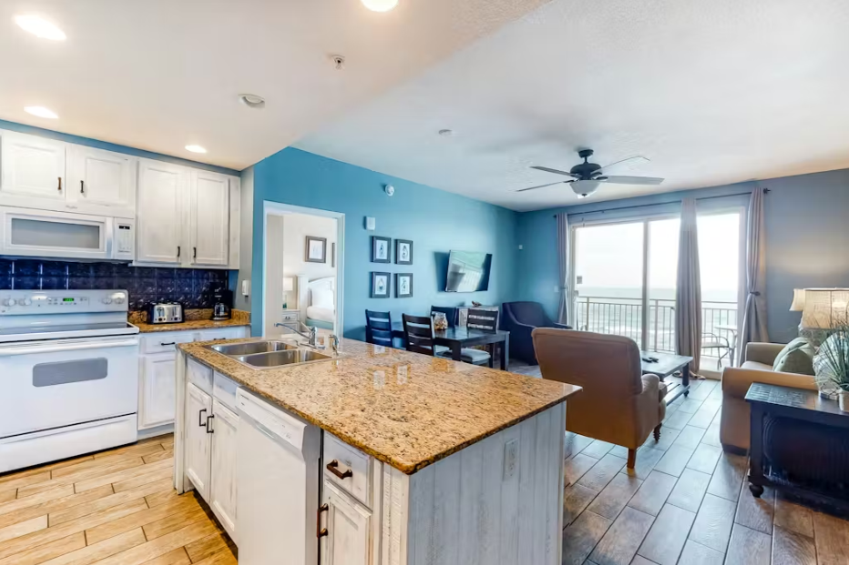 Escape to the coast and make yourself at home in Sterling Reef 505, an inviting 2-bedroom, 2-bath beachfront retreat designed for comfort and unforgettable views. Perched directly on the Gulf, this beautifully styled condo offers sweeping panoramas of emerald waters and pristine white sand from nearly every angle — including the living area, kitchen, primary bedroom, and a generous private balcony. Ideal for families or groups, the condo accommodates up to eight guests with a serene king suite featuring balcony access, a guest room outfitted with a twin-over-full bunk plus an additional twin bed, and a convenient sleeper sofa in the living room. Whether you’re preparing beach-day snacks or full family dinners, the fully equipped kitchen has everything you need. Stay active with access to the on-site fitness center or simply relax and let the ocean breeze set the pace. Begin each day sipping coffee while watching the waves roll in, and wind down in the evening as the sky lights up with spectacular Gulf Coast sunsets. Sterling Reef 505 offers the perfect blend of relaxation, comfort, and coastal charm — an ideal setting for your next family vacation or seaside escape.