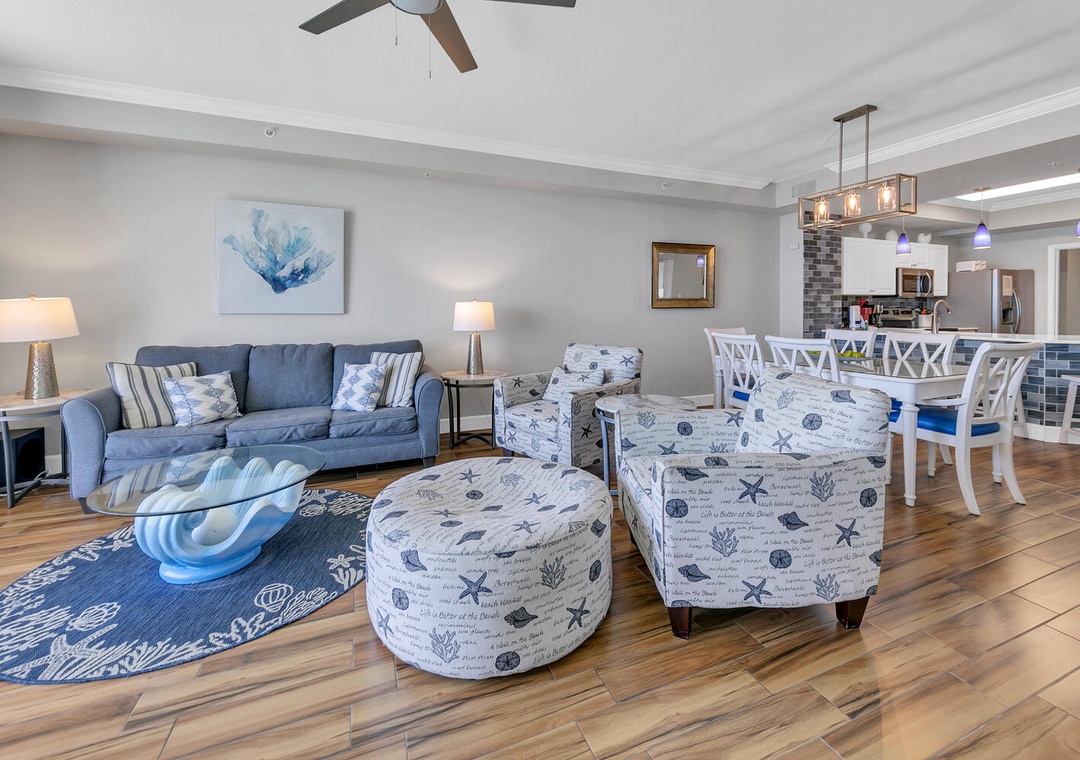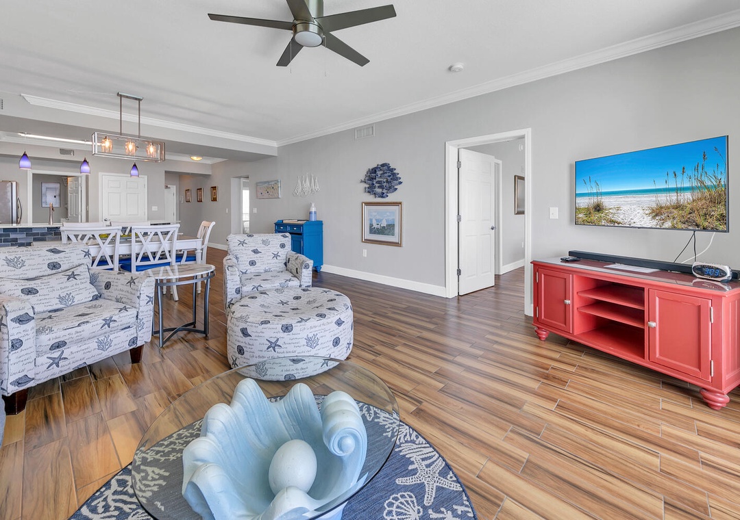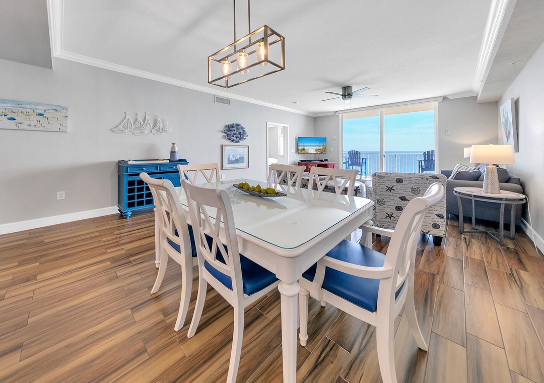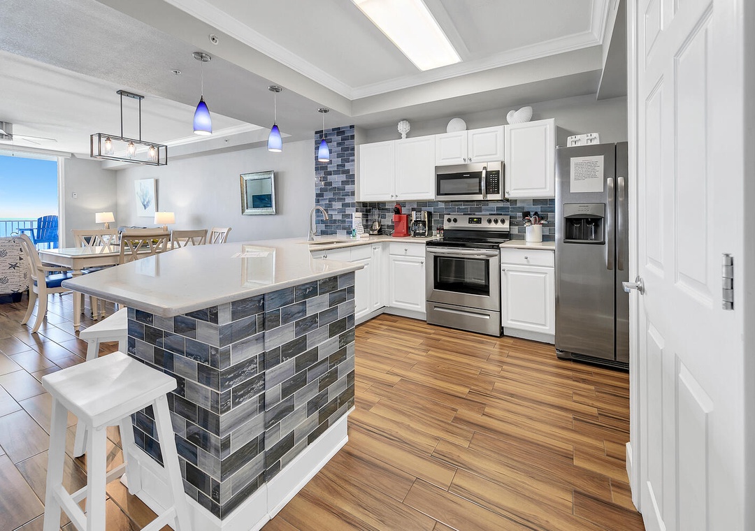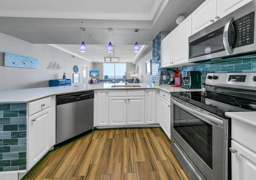 Welcome to Tidewater 1608 offers floor-to-ceiling Gulf Front views and a pool view from the living room, kitchen, master bedroom, and balcony! Gaze across the endless gulf shoreline from your private beachfront balcony or unwind with your loved ones. This spacious, 2-bedroom, 2-bath condo features tile flooring and beautiful beachy decor throughout! You will find a fully equipped kitchen with granite counters, all stainless-steel appliances, and gorgeous views of the Gulf. There's a king bed in the master bedroom, 2 queen beds in the guest bedroom, and a sleeper sofa in the living room, sleeping a total of 8 guests comfortably. You'll also have a washer/dryer in the unit for additional convenience. With stunning 16th-floor beachfront views, incredible resort amenities, and located under a mile from Pier Park, you're sure to have a perfect vacation at Tidewater 1608!