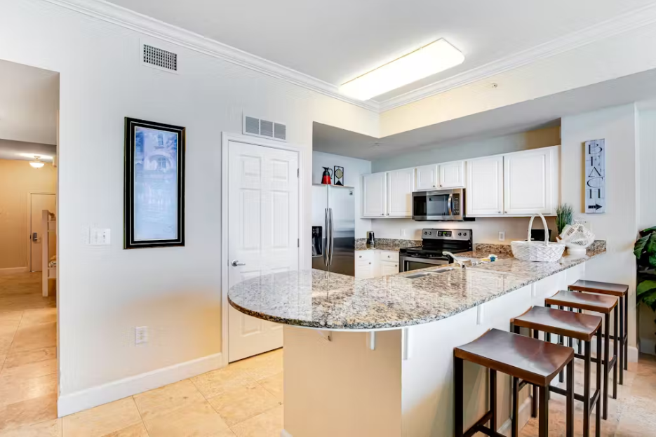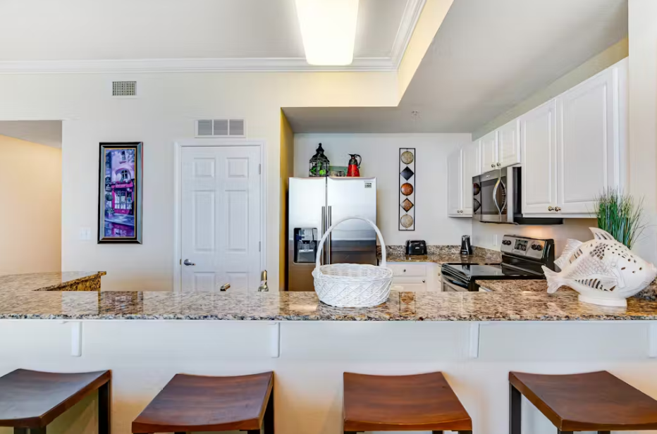 This condo features a king master bedroom, a cozy twin-over-twin bunk in the hallway, and a double sleeper sofa in the living room, perfect for families or small groups. Start your morning with coffee on the balcony, soaking in breathtaking ocean views, or unwind in the evening with a cool drink and the sound of the waves. Enjoy access to multiple shared pools, or head straight to the sugar-white sands and emerald waters just steps away. At Tidewater 3006, the beachside fun never ends—come experience it for yourself!