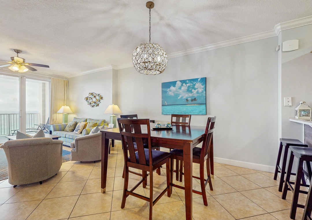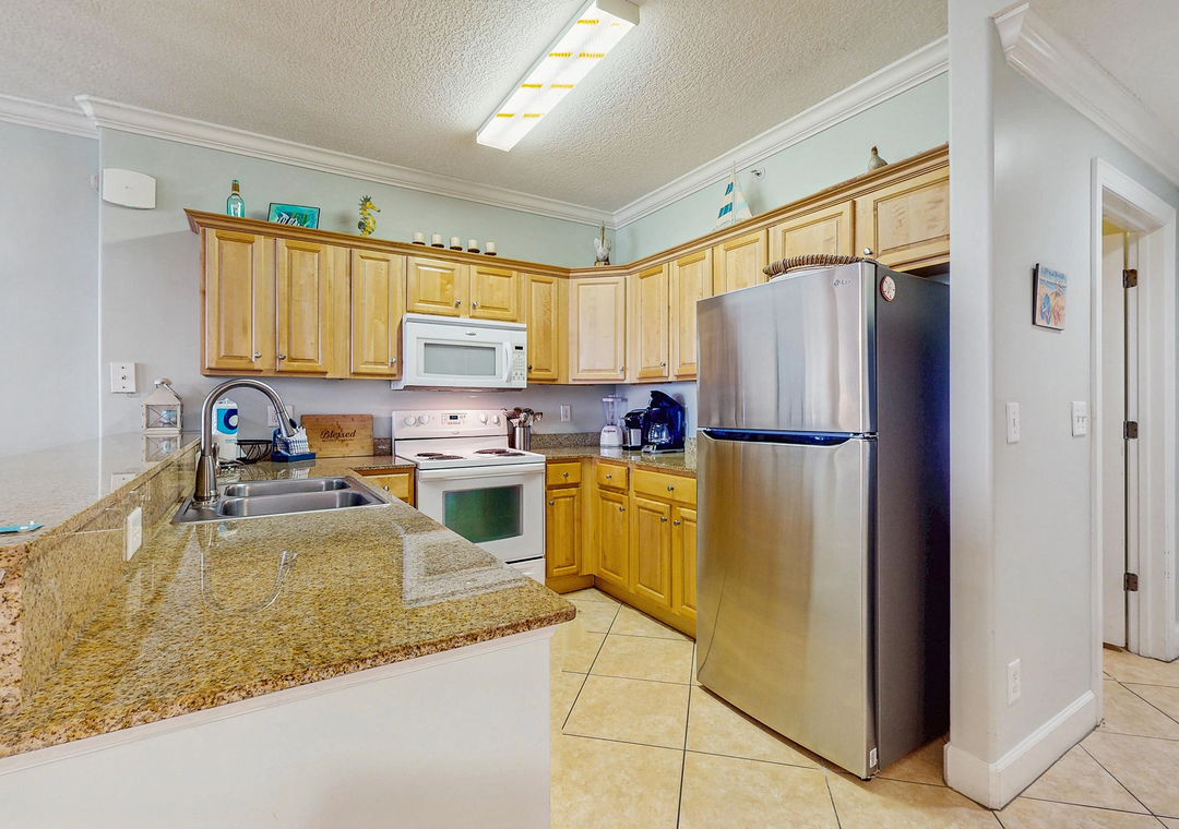 Experience beachfront living at its finest at Tropic Winds 1003, a retreat on the peaceful west end of Panama City Beach. This inviting 2-bedroom, 2-bath condo is designed for comfort and relaxation, accommodating up to 6 guests with a king bed in the Gulf-front master suite—complete with private balcony access and an ensuite bath—a second king bedroom, and a sleeper sofa in the living area. The fully equipped kitchen, featuring stainless steel appliances, makes it easy to prepare meals at home, while the open-concept living space creates a bright and airy coastal vibe perfect for unwinding after a day in the sun. Step out onto your private balcony and take in the soothing sights and sounds of the Gulf—ideal for morning coffee or evening sunsets. Guests also have access to on-site fitness amenities, making it easy to stay active during your stay. Whether you're here to relax or explore, Tropic Winds 1003 offers the perfect setting for your next Panama City Beach escape.